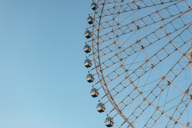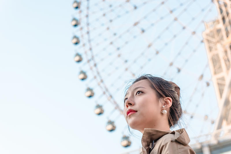 (这边拍照真的太日系了~我逗他说风吹得有点冷,他马上给我他的风衣,镜头低一点,让我眺望一个远点,然后他帮我和摩天轮合影)这是我第一次和男朋友一起做摩天轮!当小小的车厢里只有你和你爱的人🌌一边欣赏景色一边聊天感觉在空中的就是彼此的私密时空。门票💰70/人(某团平台上平常好象是55一张) 一圈大概18分钟左右。(但是我感觉其实真的蛮慢的)没有学生票,可以用微信支付宝付款码付款。