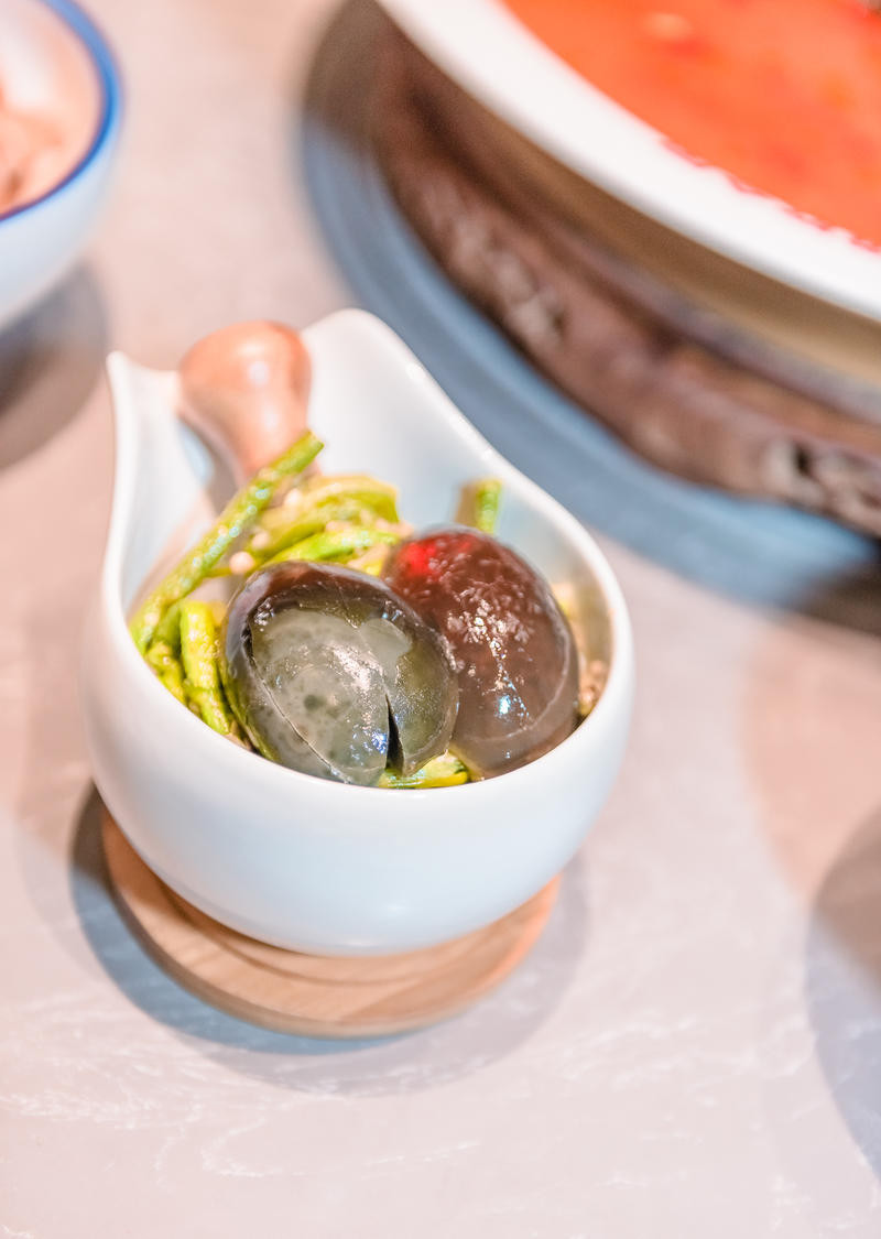 🍆🍆 「皮蛋辣椒擂茄子」特色凉菜,我路过的时候就看到店里摆它的厨具,很地道的湘菜,手动搅拌均匀后才吃哦