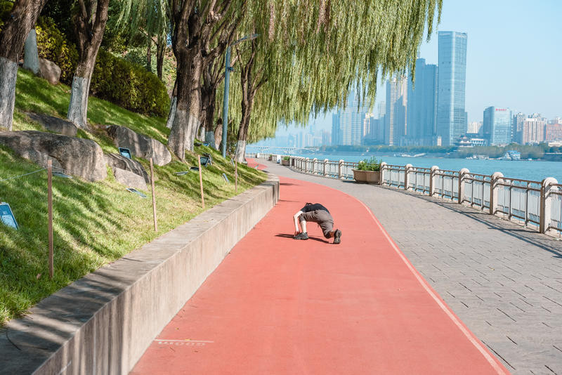 晨跑热身的人