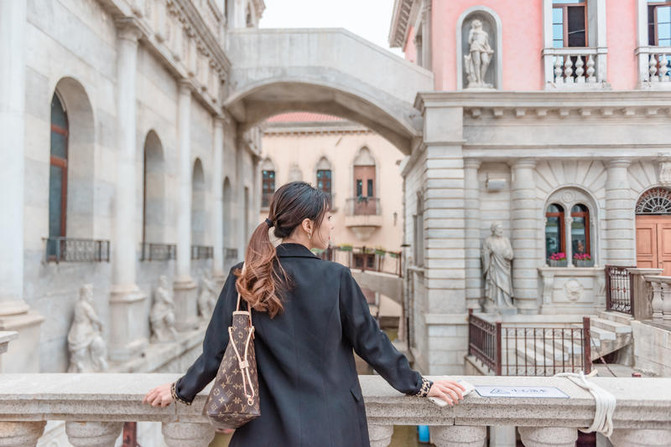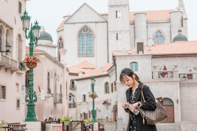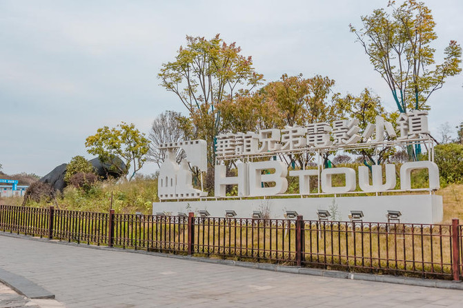 里面的对称式结构挺壮观的,构图的话可以选择和手机网格线平行的角度,更多的勾勒出平行线条感。有点高。如果恐高的话可平行拍,哈哈哈我就不太敢往下面看怕手机掉下去。里面是白色的结构,简单大方的风衣和连衣裙,纯色的衣服都会比较适合拍照。高饱和度的颜色,红色黑色估计都和这里很搭配。深一点颜色的衣服对比度会比较强。强烈推荐来剧院的话可以顺路来这边拍拍。不像网红景点需要等位。有大量的景点位置可以自己探索一下。第五站:华谊兄弟电影小镇