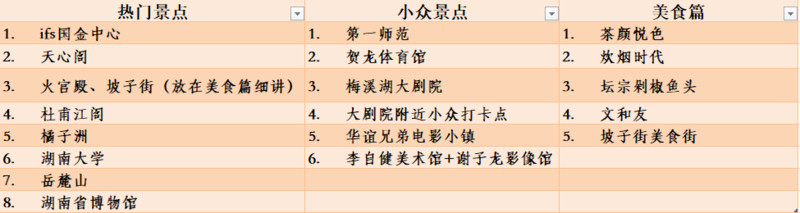 “独立寒秋,湘江北去,橘子洲头。看万山红遍,层林尽染;漫江碧透,百舸争流。“小时候背的诗句现在还记忆犹新,对长沙一直很有好感,这次正好男朋友也在弄离职的事情,我跟他讲那我们去玩一趟好了,他马上响应,于是行动派的我就开始着手准备啦,我负责查攻略,他负责预定各种票和酒店 。因为出发前做了很多的功课,所以我们的行程还是很顺利的,这几天有感受到长沙的美食,又辣又爽,真的是一座吃货舍不得离开的城市,任何一条大街小巷都能展开一场饕餮盛宴。如果有机会的话下次还是会选择来长沙二刷或者三刷的,这篇游记我有些景点和一些美食攻略,机票酒店包括在各个网站上总结出来的一些经验干货会在后面哦~)有什么问题和补充欢迎大家留言