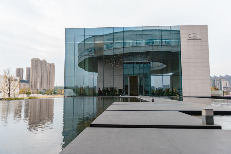 纯白色的配色,对称的线条感。位置的话可以导航一下,坐地铁二号线到梅溪湖艺术文化中心站 四号口出左转就可以了楼下可能会有保安拦住,如果觉得是单纯为了拍照的可能不让进,不过可以从地下停车场上去的地下停车场附近的门就可以坐电梯上去