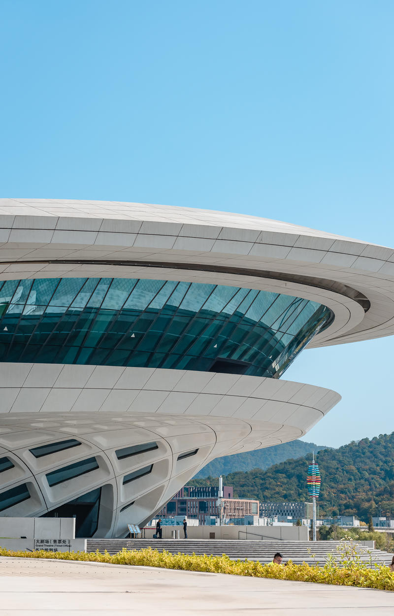 长沙梅溪湖剧院是知名建筑设计师扎哈的作品,内部设计超好,线条流畅空灵,喜欢建筑的同学值得一看。我来到这里有超级熟悉的感觉,然后一查,发现广州大剧院也是这位设计师设计的。果然是如出一辙的手笔呢。看到这个介绍上说剧院俯瞰像是一朵盛开在梅溪湖旁的芙蓉花。 真的诶,完全可以感受到音乐旋律的流动,从中心向外延伸。