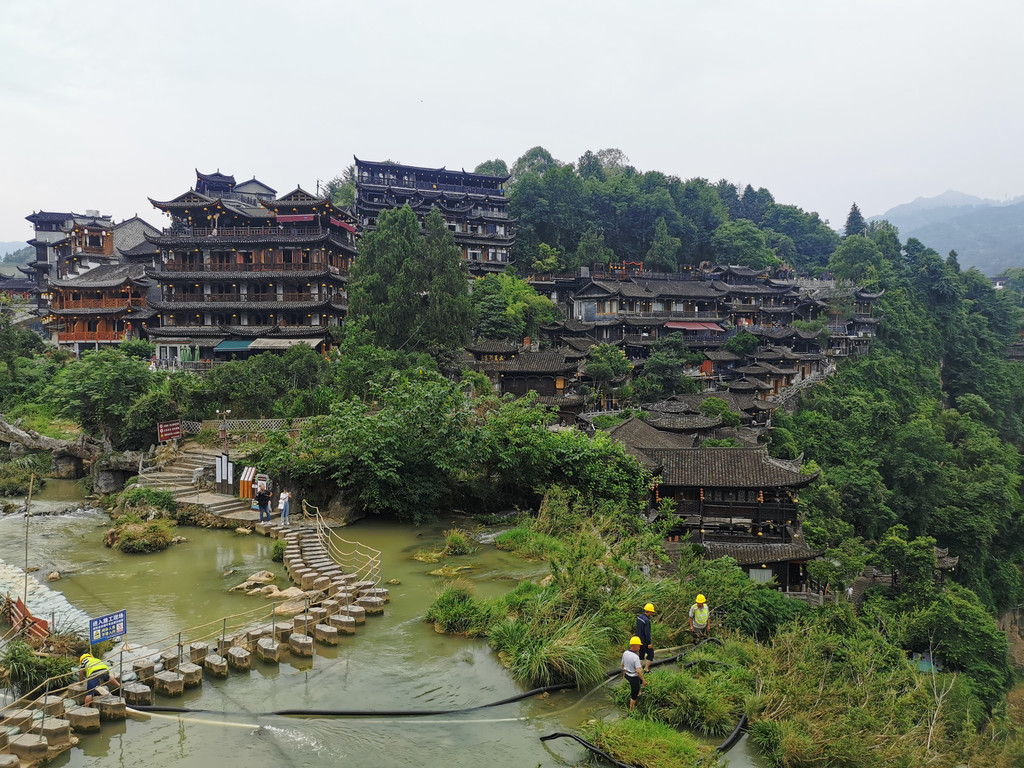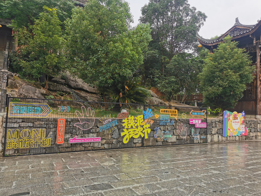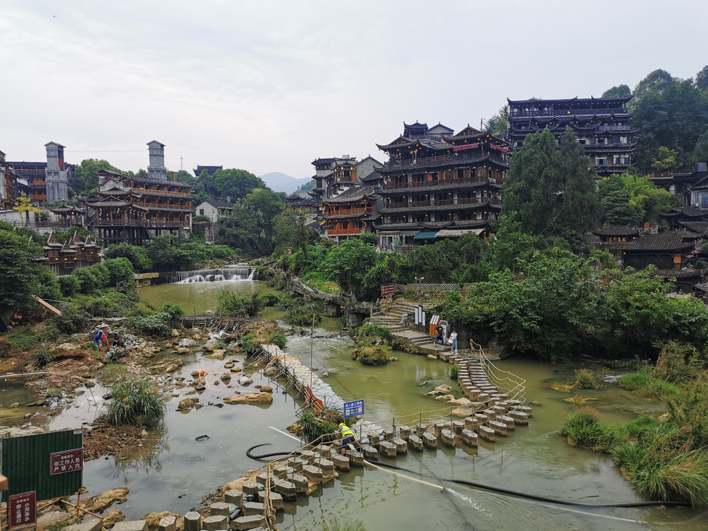 镇内的这条小溪叫营盘溪,去时溪中的步行过溪石墩正在修缮中。