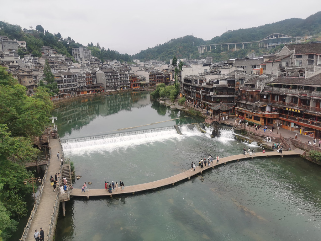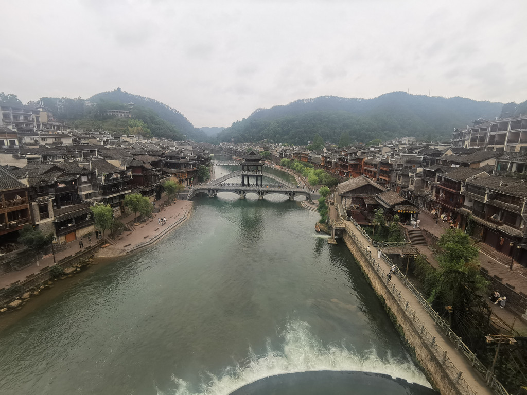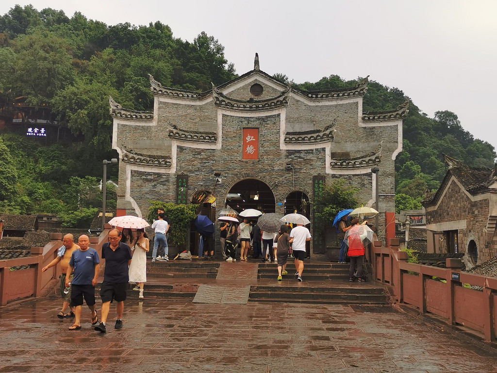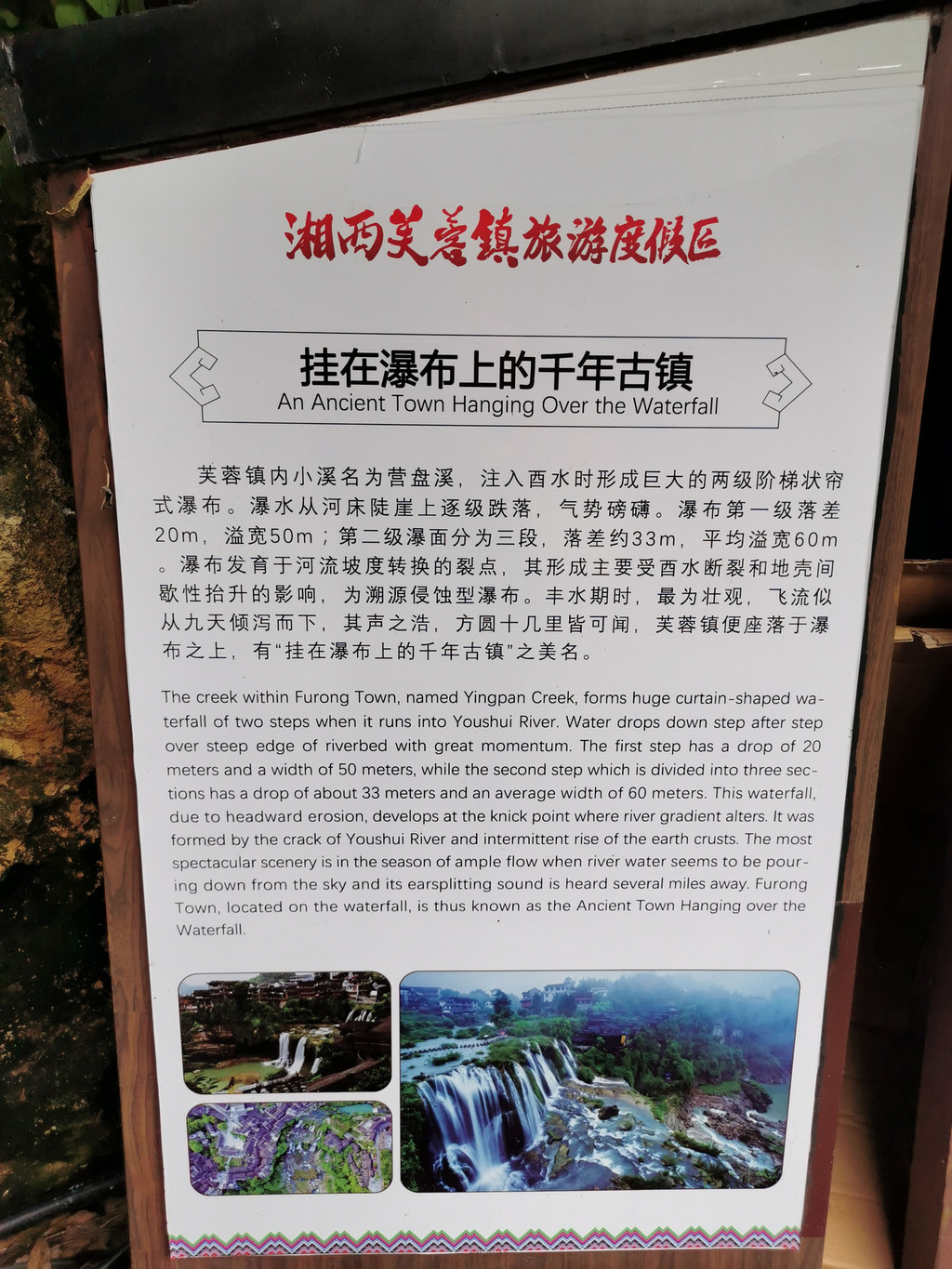 从张家界去往凤凰古城的路上,我们特意转入芙蓉镇去转了一圈儿。芙蓉镇号称是“挂在瀑布上的千年古镇”,因谢晋导演的电影《芙蓉镇》而为国人所知。