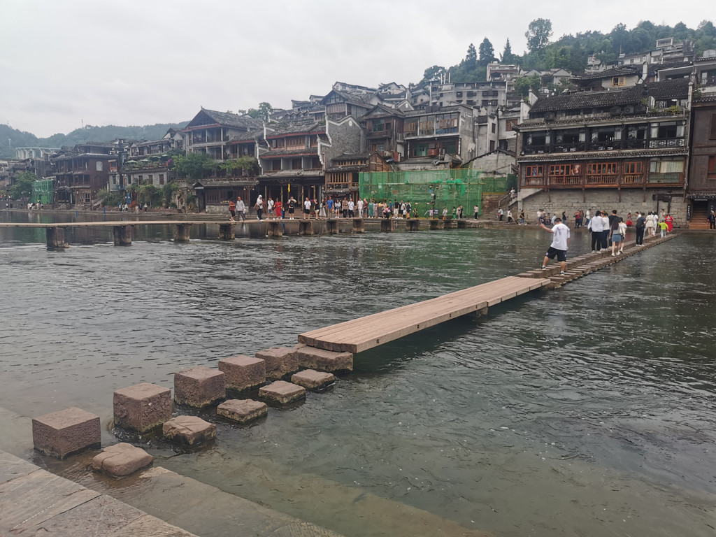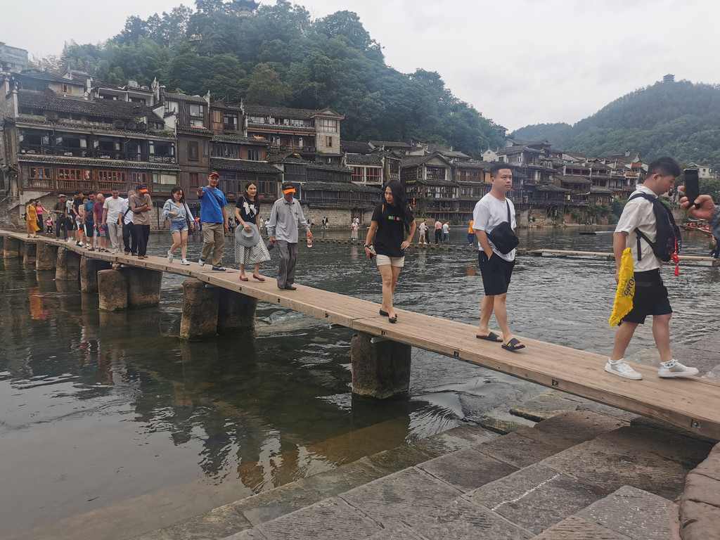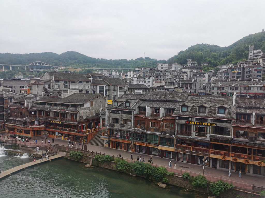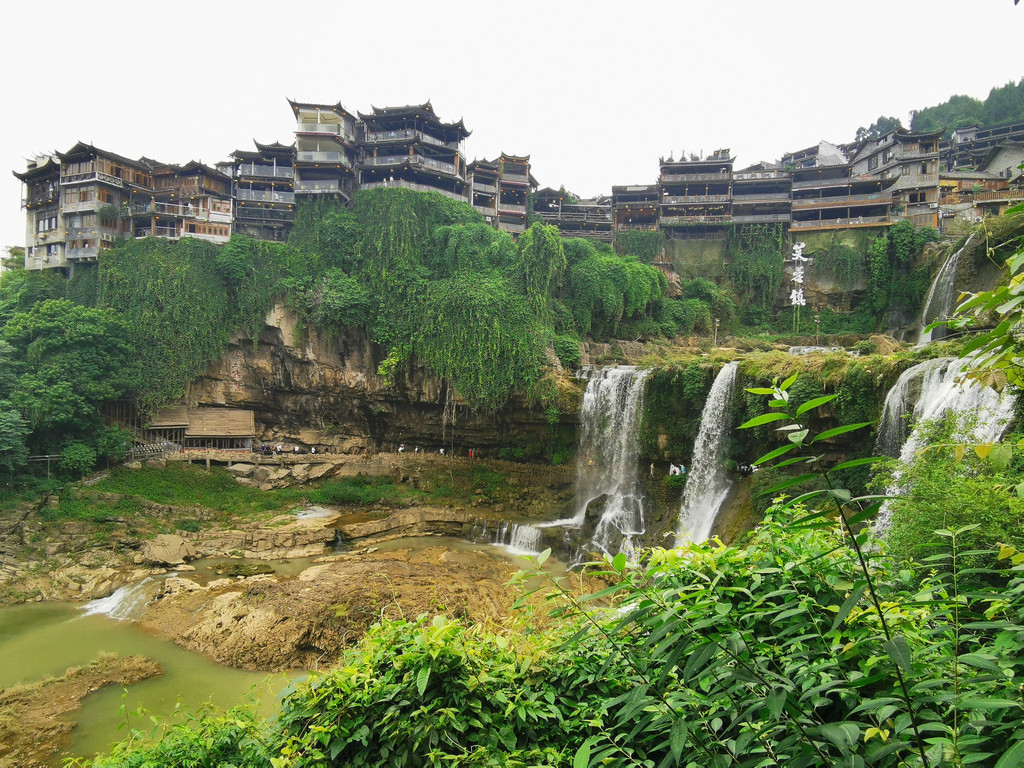从张家界去往凤凰古城的路上,我们特意转入芙蓉镇去转了一圈儿。芙蓉镇号称是“挂在瀑布上的千年古镇”,因谢晋导演的电影《芙蓉镇》而为国人所知。