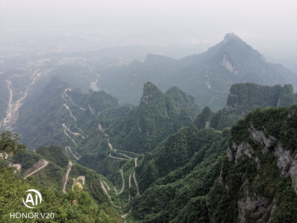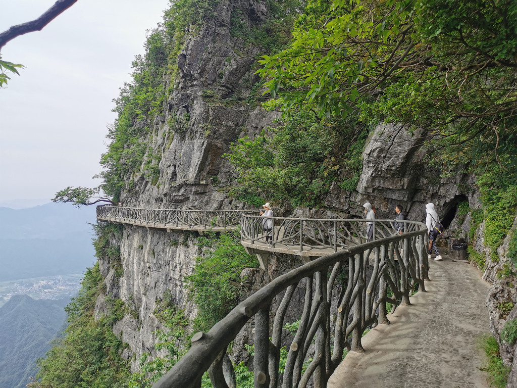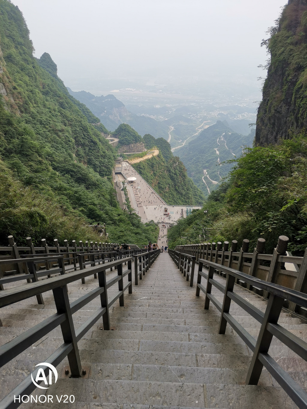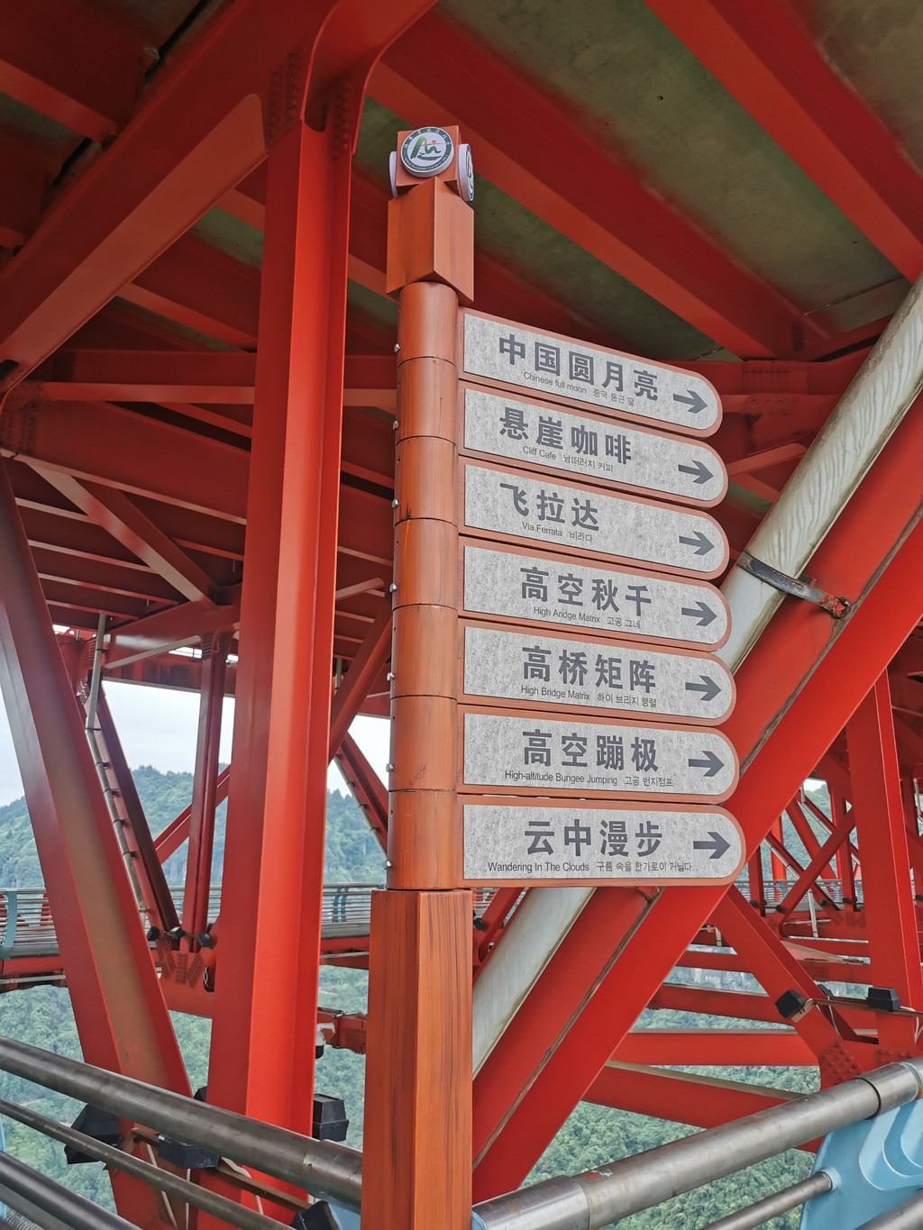 天门山景区。我们选择的B线上山路线,要先在缆车站乘坐景区的观光车,去到上天门洞的快线缆车,到达共有999级的天梯。不想爬楼梯,自费买票搭乘扶梯上去(32元/人),然后再搭乘七级上山扶梯(费用已包含在套票里)上到山顶。我们沿着东环线和西环线整整绕了一周,慢走慢游观景拍照的大概也用了二三个小时。整个山顶游道都比较平坦,没有太多台阶,所以不会太累,最后搭乘山顶缆车离开景区直接下到缆车站,从离开酒店到回到酒店,大约用了五六个钟头。天门山景区大概是全国唯一一个可以从市区直接乘坐缆车到达山顶的,缆车单程用时约二十多分钟,实在是方便得很。整个景区的公共设施都建设和维护得比较好,不愧是5A级景区。