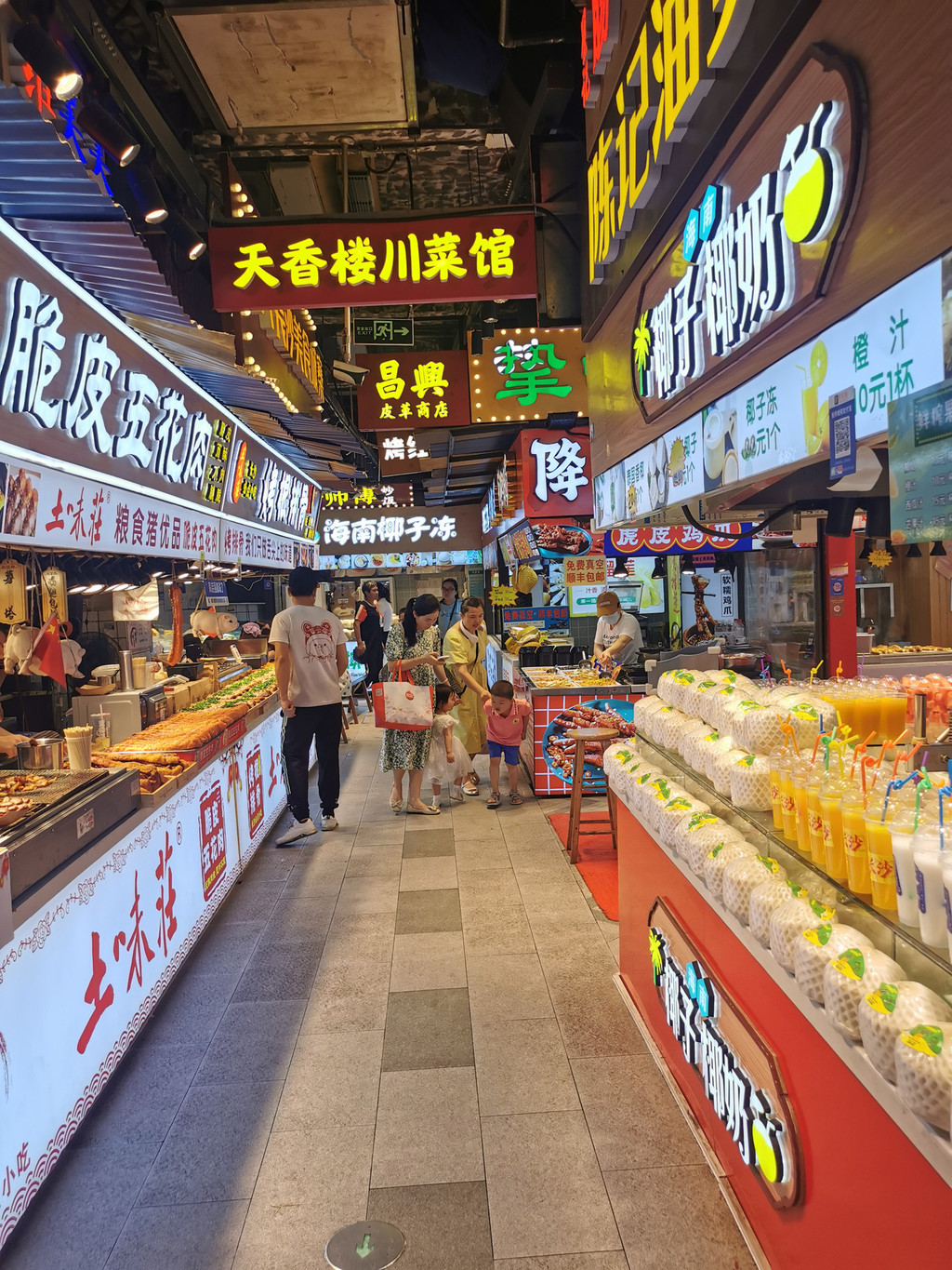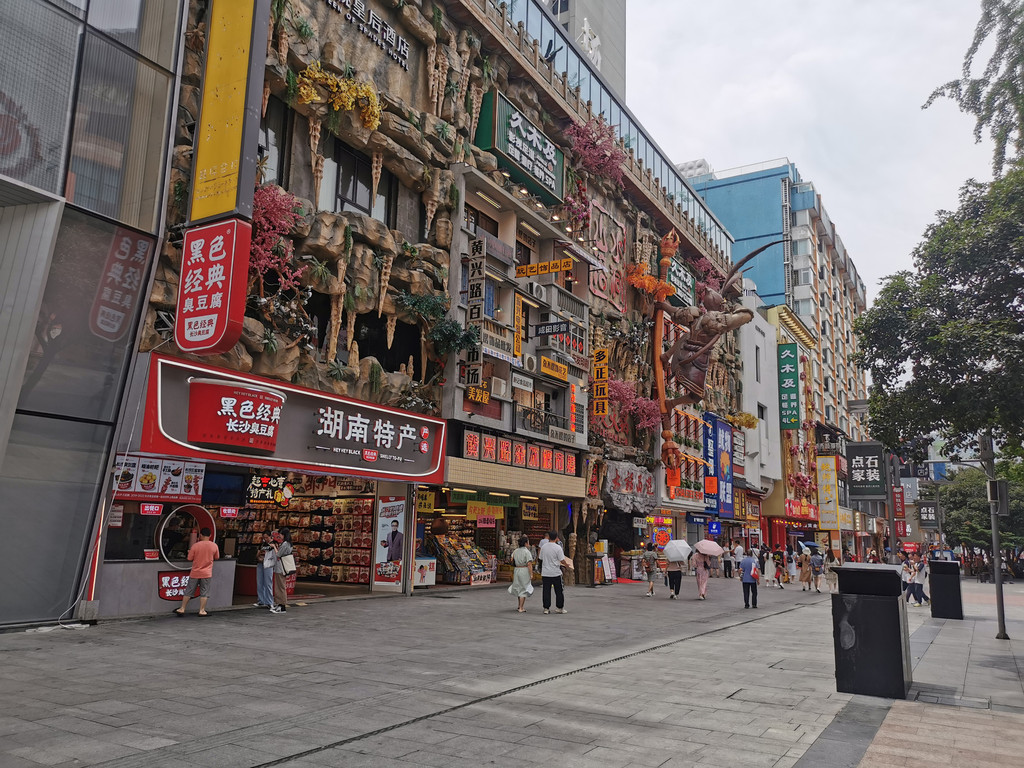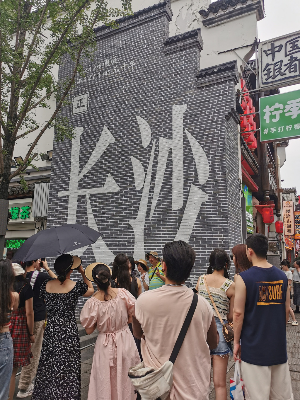 这天是周六,一大早我们就出发了,意欲将长沙的几条步行街都转上一圈儿,不为吃喝,就只是想看看热闹。坐地铁在五一广场下车,没看到什么广场,大概就是个地名吧,然后去了黄兴路步行街、都正街、坡子街、最后是太平老街。其中,黄兴路步行街最宽敞,但是不太好看,比咱们北京路差多了;都正街只是一条老街没啥商业活动;在坡子街没找到电视剧《守护解放西》里的那个坡子街派出所,原址处只留下了几幅宣传壁画;太平老街最有商业步行街的味道,也最值得逛吃逛吃,最有气氛也最多好吃的。当然喽,这种有吃有喝的步行街是越夜越热闹,吃货们白天是不会出门的,所以每条步行街的人都不算多。