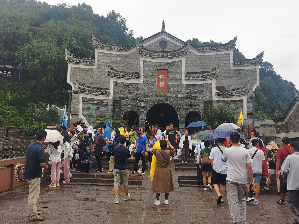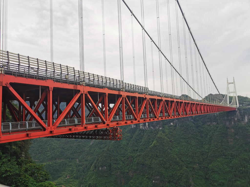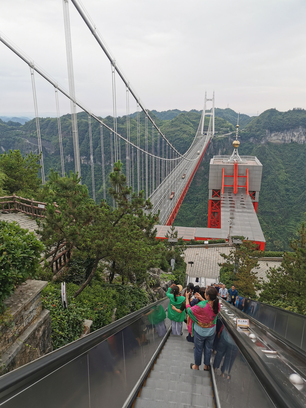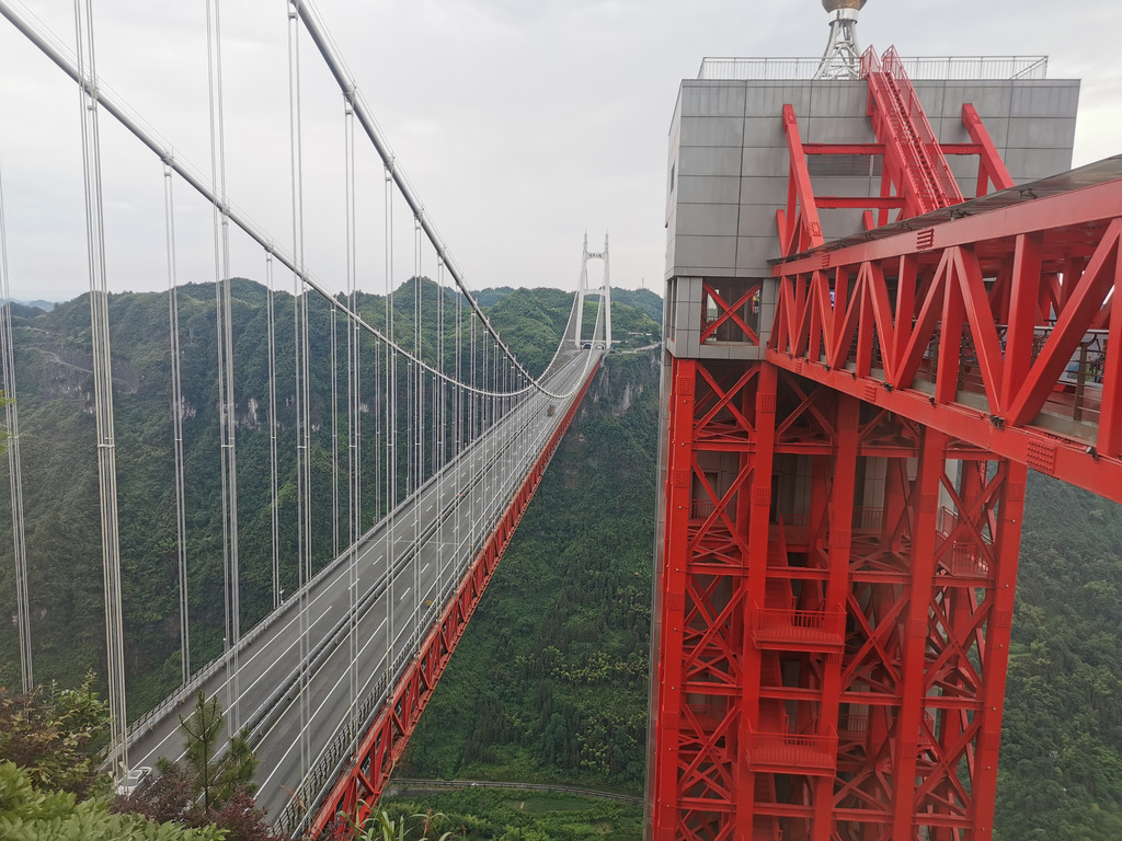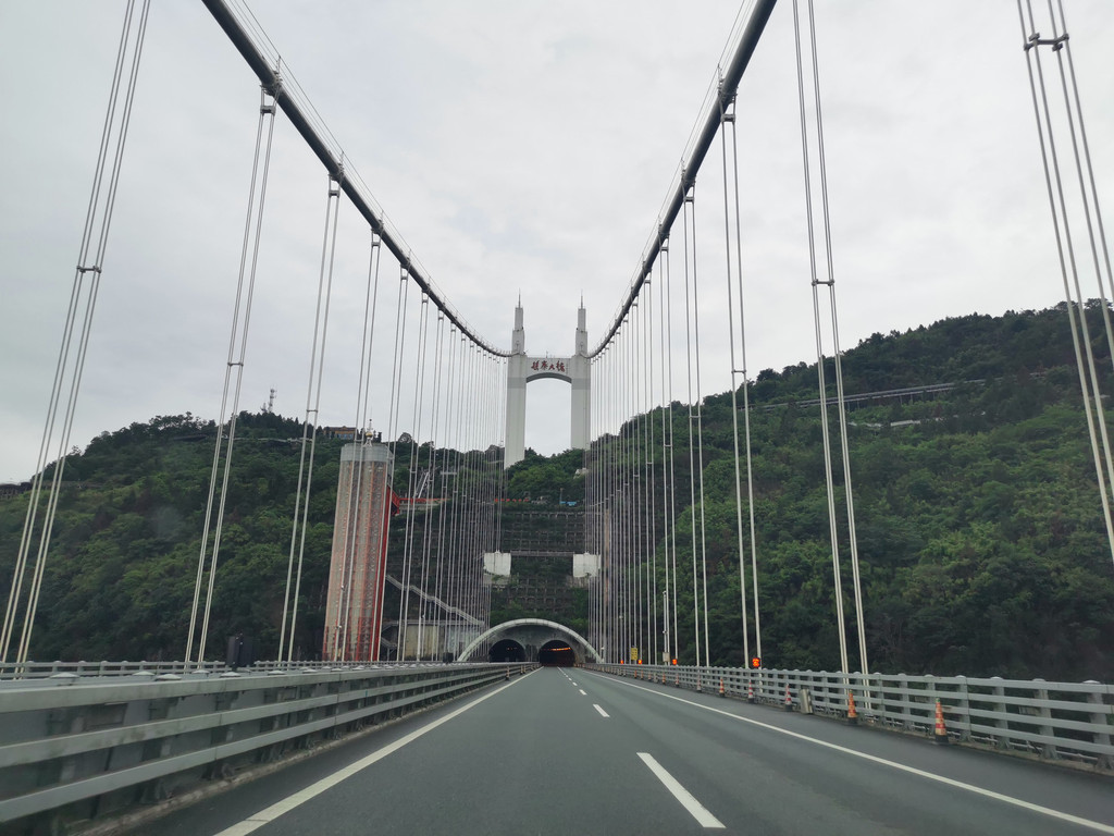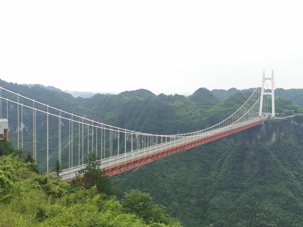 离开芙蓉镇,继续前行到了湖南吉首矮寨大桥。大桥位于德夯大峡谷之上,是包头—茂名高速公路在湖南省湘西土家族苗族自治州境内的一段高速通道。矮寨大桥如今已成为一个收费的观光景点,设有观光电梯、观光通道及观光平台,为游客提供既能领略大桥雄伟风姿,又能俯瞰矮寨公路奇观的绝佳场所。