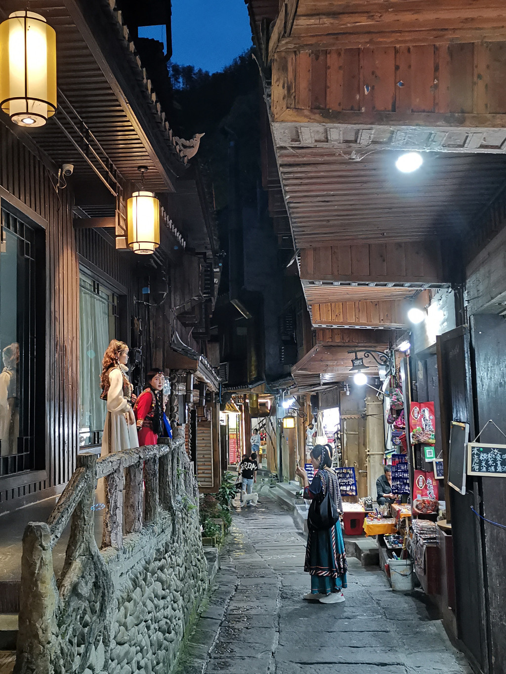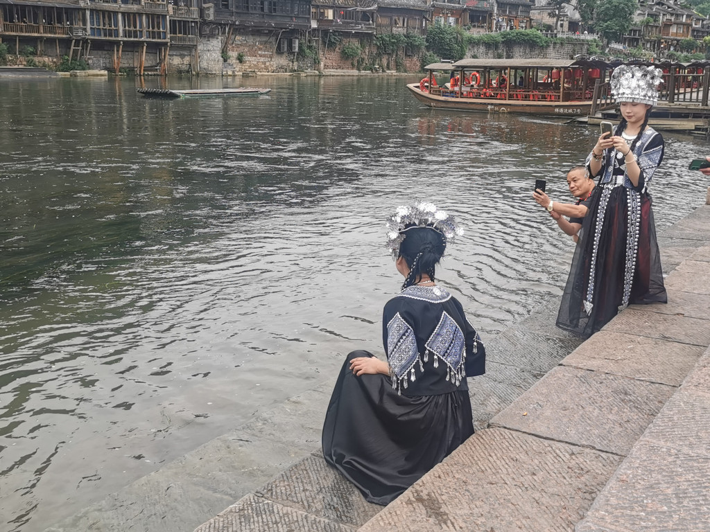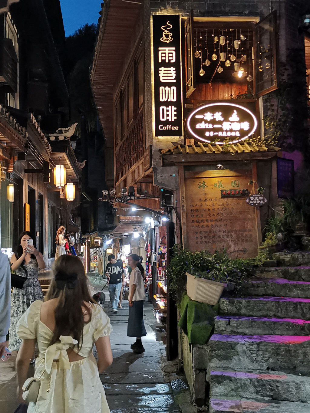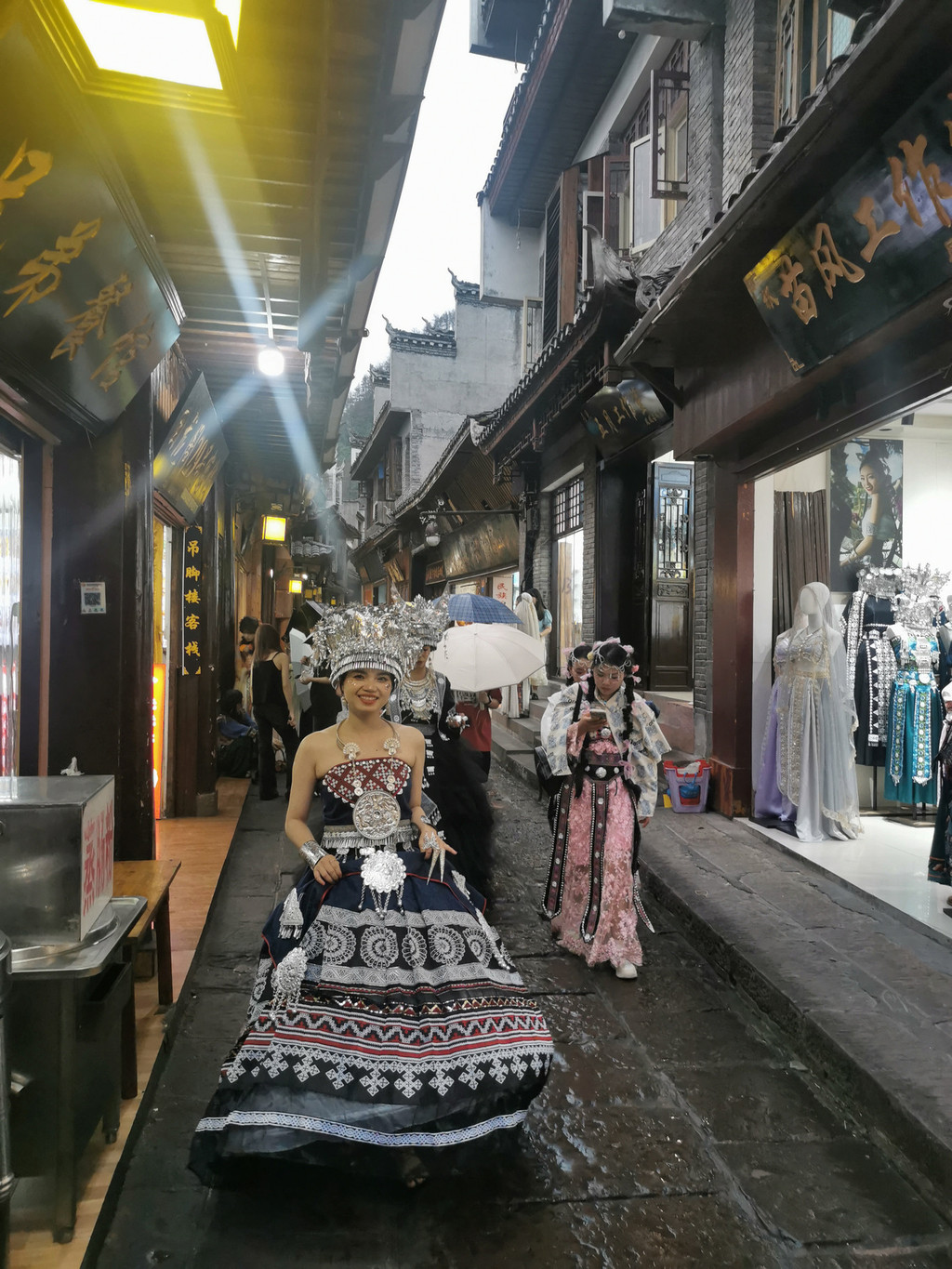 到达凤凰古城时正值黄昏,入夜后的古城似乎越发生动活泛起来。河水在灯光的映射下,波光粼粼流光溢彩;街巷里游人如织,到处都可以看到身着漂亮民族服饰的美女们,摇曳着身姿,摆弄着造型,形成一道道靓丽的风景。