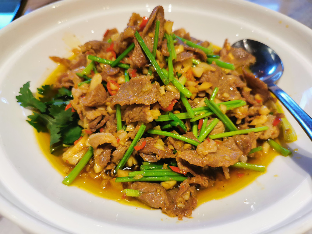 我们在酒店隔壁的青花瓷湘菜馆吃了两顿,这家环境很好,菜品也很不错。原来一直不太喜欢湘菜,觉得只辣不香,这次在他家吃了小炒羊肉和小炒牛肉,味道居然都挺不错,很合我们的口味。