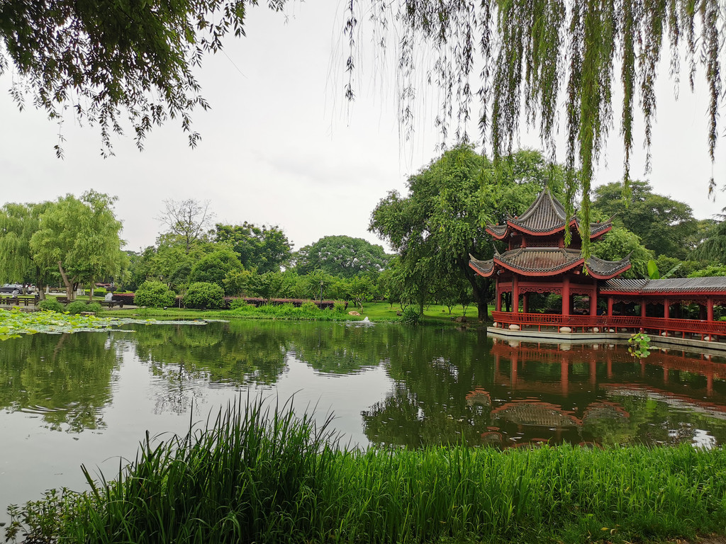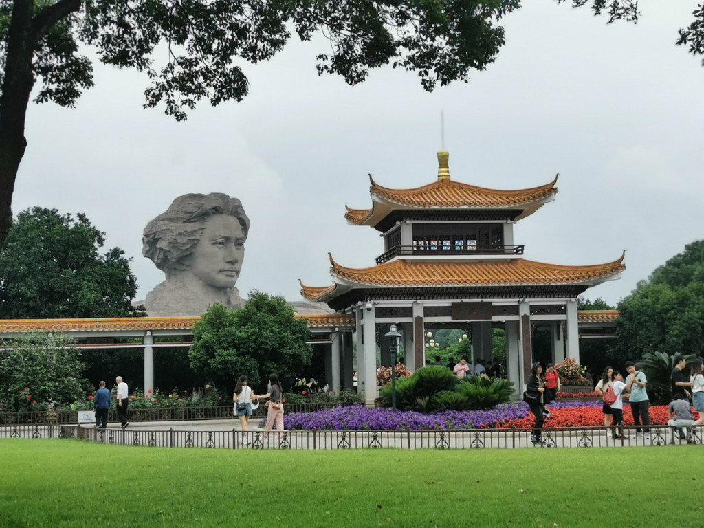 初夏的橘子洲虽然不见漫山红叶,但却是满目青翠。