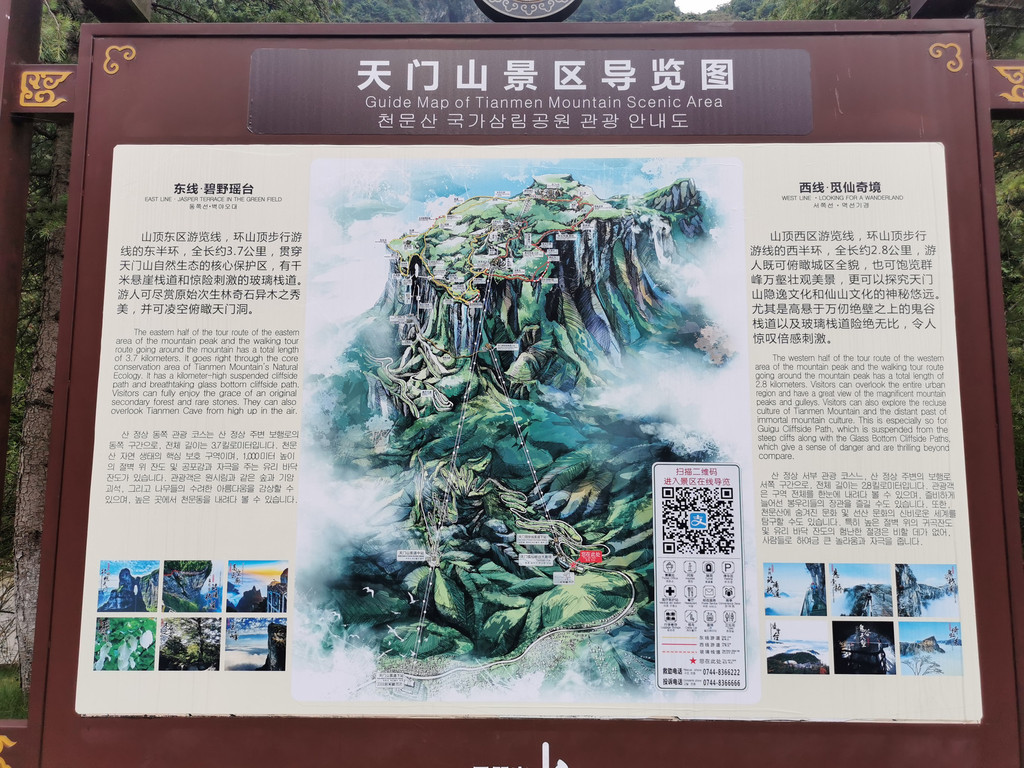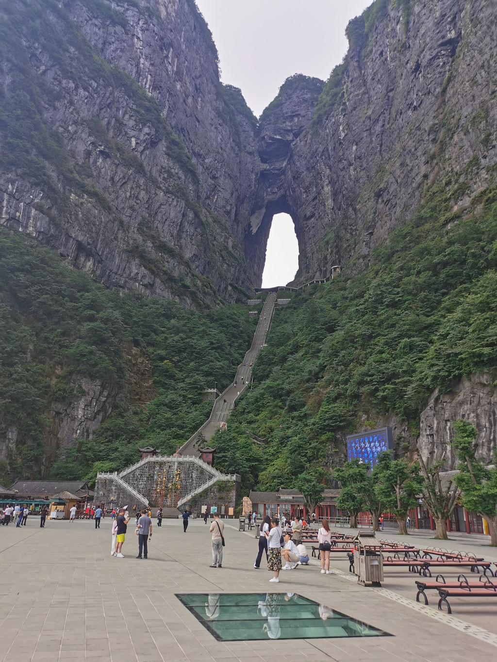 @划重点:行前看了好多有关张家界旅游的介绍,大多只是介绍了风景,并无详细的玩法,这次亲自走一趟,总算弄明白了。如今大部分热门景区都采取了预约制,所谓“无预约,不进园”。我们到达酒店后,就请前台美眉帮忙预约了第二天去天门山的门票,小姐姐对这个操作“门儿清”,几下子就搞定了。她帮我们预约了B线上山,说是这边人少。后来我们观察了一下,发现A线和B线只是上山的路线不同,对游玩并无影响。大部分旅游团会选择A线,即从市区内的缆车站直接乘坐缆车上到山顶,沿着游道从西到东游玩,然后搭乘七级电动扶梯下到天门洞,经过999级天梯下行至缆车站,从天门洞搭乘缆车下山,最后再乘坐一程观光车回到市区缆车站,结束全部旅程。而B线的游玩线路则与之相反,唯一不同的就是要上行爬9999级天梯,有些人特意选择这条线路就是为了爬这999级天梯,当然,如果不想爬上爬下,还可以花32元买张票乘坐电动扶梯上去(或下来)。