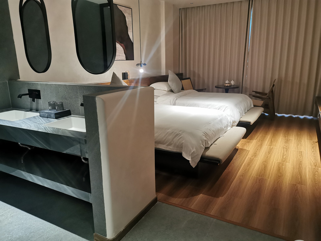 最后一站是梵净山,入住梵净山山野无尘民宿。我们出游极少住民宿或客栈,这次游玩梵净山,在携程上看到这家民宿距梵净山景区很近且评分很高,价格还便宜,就想试试他家。民宿果然距离景区大门很近,步行约十分钟可达。说是民宿,感觉房间布局设施和一般的酒店没啥差别,房间里有智能管家小度,窗帘,电视,灯光,空调的开关叫它一声就搞定了,坐厕也是智能的,座圈暖烘烘的很舒服还能自动冲水,总之住得蛮舒服的,除了早餐简单了点。