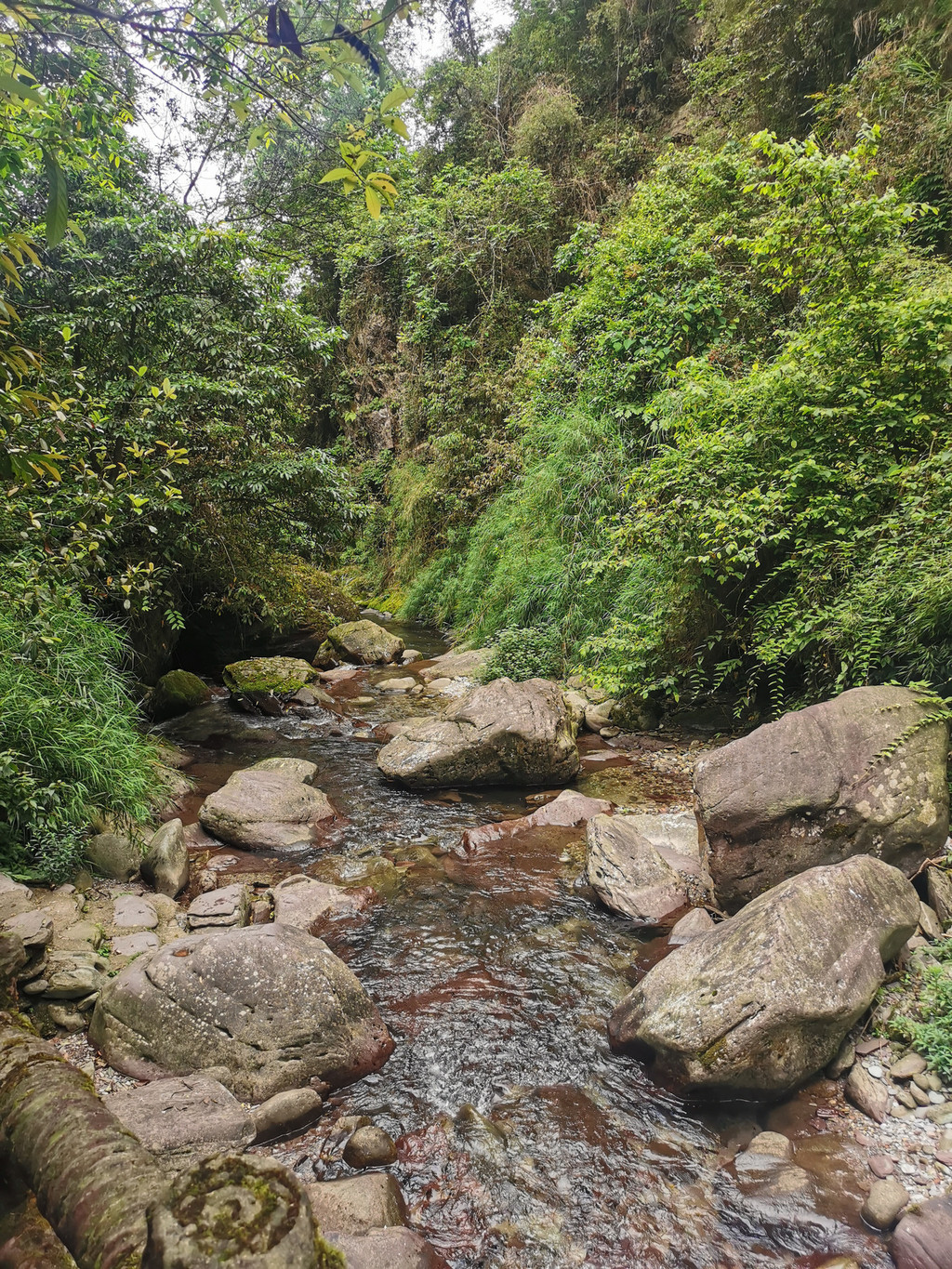 金鞭溪全长约7.5公里,主要是沿着溪水溯溪而上,也需要原路返回。本来溯溪是我们比较喜欢的游玩方式,但因我们去时是枯水期,河滩里只见石头不见水,游玩性太差,让我们没了兴致,草草走了几步就返回了。