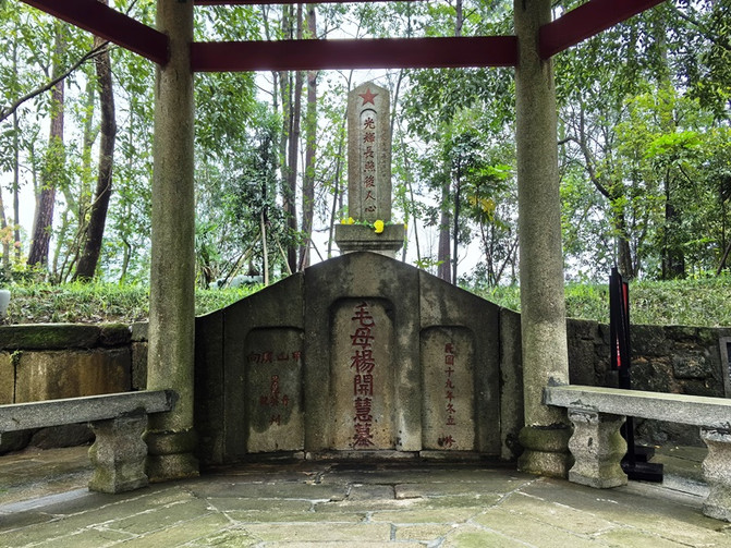杨开慧与其母亲向振熙同穴的墓。杨开慧的母亲向振熙1962年逝世后,遵照毛主席的嘱托,将杨开慧和向振熙的葬棺从原来的地方迁葬至陵园中央,将杨开慧与向振熙同穴安葬。