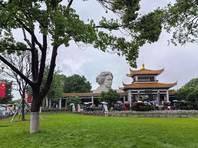 橘子洲头,湘江北去。阴雨天气,看不到万山红遍、层林尽染、漫江碧透、百舸争流、鹰击长空、鱼翔浅底的景色。