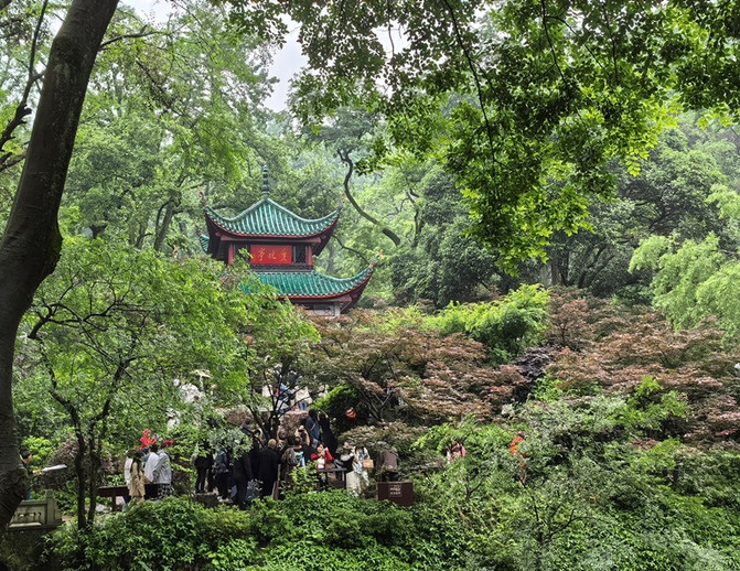 虽然是雨天,但由于是五一假期,游人仍很多。