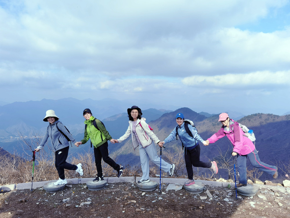 巧遇七顾师妹,上次刚在水门尖遇到过,真是有缘。她从张西独自一人登山而上,说用了三个小时,上次水门尖她也是独行侠,真是佩服。