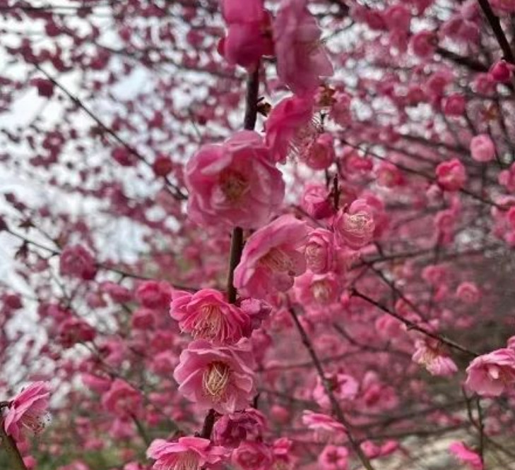 北山植物园,又名长沙植物园,坐落北山水库之滨,占地面积广阔,基中近万株梅花竞相绽放,占据了园区苗木绿化面积的11.4%。如今,正是梅花盛开的季节,园内一片花的海洋,白的、粉的、红的,各色梅花交织在一起,形成了一幅美丽的春日画卷。