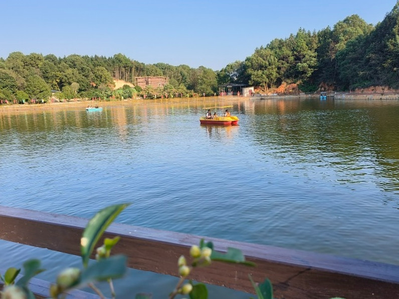 泉鹭山庄玩的项目:“遇见小院”休闲帐篷喝茶聊天(彩绘娃娃、植物拓印手提袋)、围炉煮茶、脚踏船游湖、亲子乐园、萌宠乐园(孔雀、鸵鸟、贵妃鸡、火鸡、还可以投喂小兔子)、攀岩、轮胎秋千、蒙古射箭、投壶、七彩吊桥、风情竹桥民族服装拍照、观赏孔雀开屏、台球、乒乓球、羽毛球、气排球、篮球、跑胡子、吊床、森林迷宫、儿童滑梯、沙池……桌游有:狼人杀、三国杀、UNO、 大富翁 。