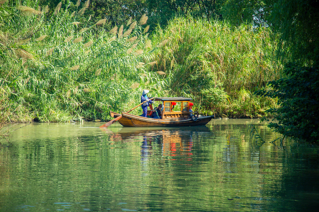 坐一次手摇船,是来沙家浜必玩的项目,穿梭在茂密的芦苇荡中,听着船娘唱一曲山歌,风吹着轻蔓飘逸的芦苇,质朴风姿中透着迷人的柔情,谁都想不到这里曾经是硝烟战场。