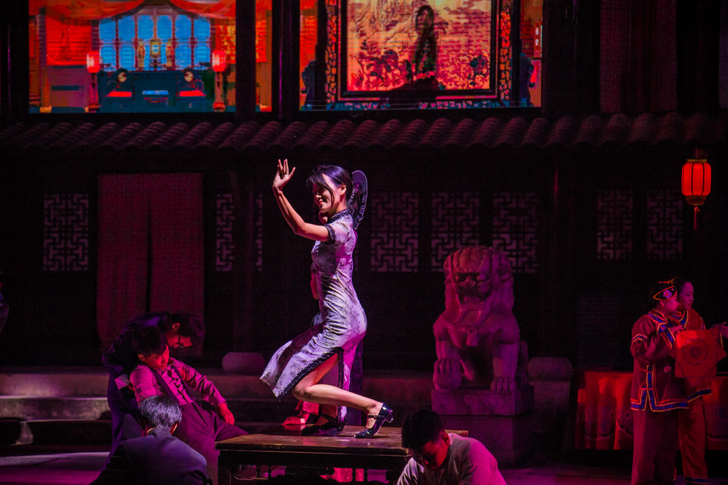 演员在街上与你擦肩而过,在头顶上飞檐走壁,让你既是看戏人,又是戏中人。惊心动魄间,一场歌舞缓解了紧张的气氛。
