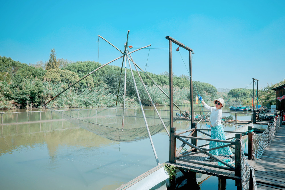 来到江南水乡,一定要品尝一下生态河鲜,可以去到沙四龙渔乐园,自己体验扳罾(zeng)捕鱼,垂钓鱼蟹,这是一种别样的旅游乐趣,特别适合家庭出游的小伙伴。像是回归到了自己的童年,赤脚踩在小河边,满身是泥巴,拿着竹竿,钓着龙虾,而这次,我们居然是钓大闸蟹哦。