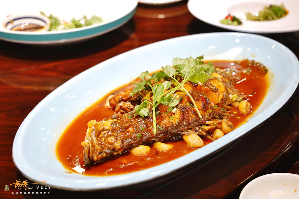 此爆鱼非鲍鱼?第一次听名字我也以为是鲍鱼,等了许久看到上来一盘炸鱼,这就是常熟爆鱼,是将大青鱼切段然后入油锅炸,表面焦黄发红,炸好后充分浸入酱汁后味道更浓郁,与浇面一同食用更美味。