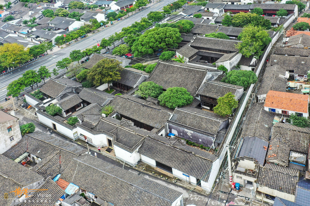 航拍清晰可见,其建筑设计遵循我国古代江南住宅以中轴为主的形制格局,分东、中、西三大部分,建筑形式丰富多样,布局因地制宜,变化生动,富有情趣,是国内完整体现明清时期江南名门望族住宅特点的典型代表。
