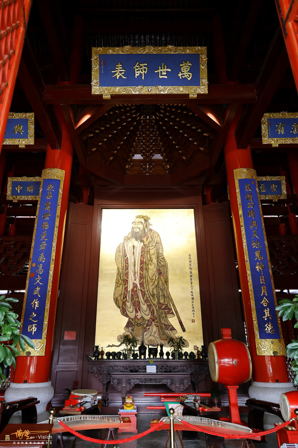 西为学,原址复原了学宫门、杏坛、明伦堂、尊经阁,修缮了泮池、泮桥;