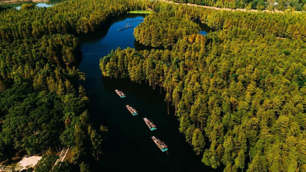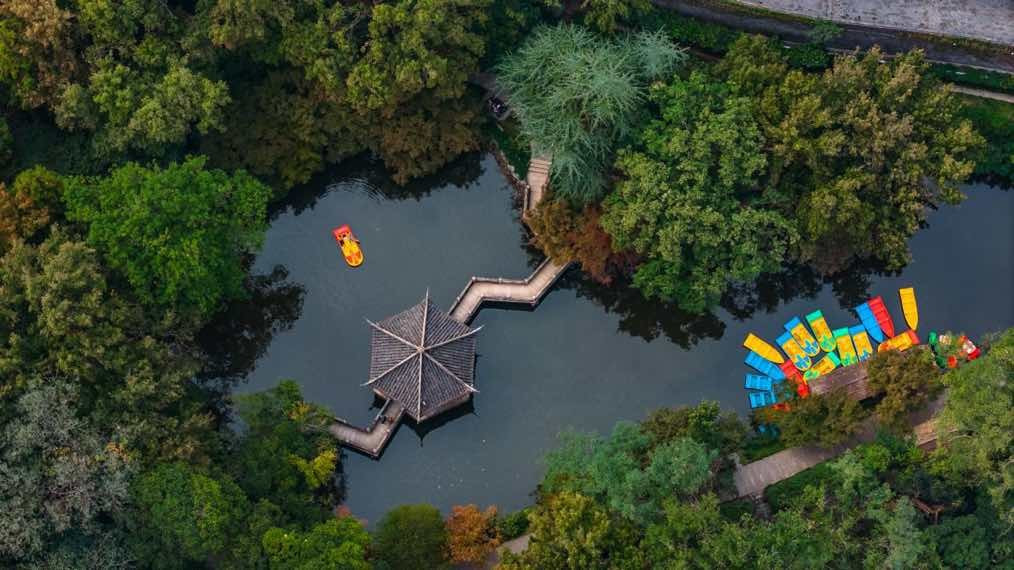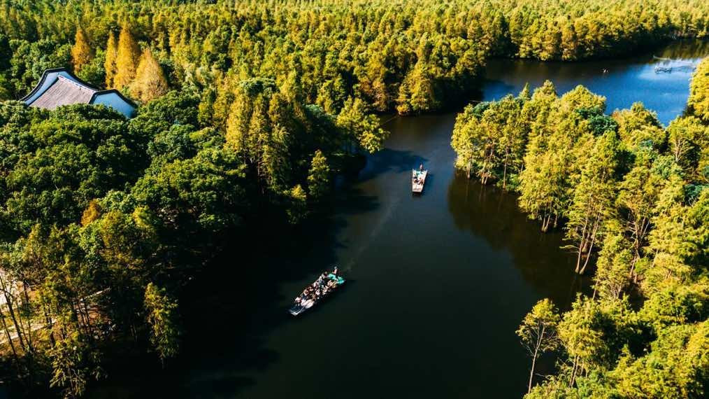 尚湖水上森林,占地350多亩,有着“江南亚马逊”的美誉。 这是一片树在水中生的奇特之地,也是万千鹭鸟栖息停驻的乐园。这个季节来到尚湖,水上森林已进入最佳观赏期,满目池杉将由绿变红,形成童话般的渐变色彩。