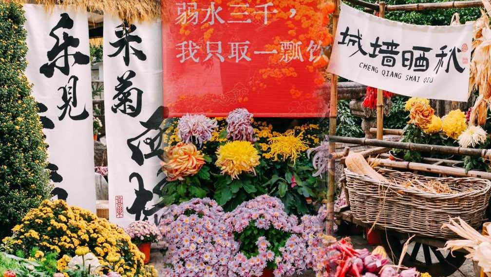 菊花千姿百态的开放着,有的含苞待放,有的开得正茂盛,一百多种品类的菊花典雅大方,风姿绰约,每一朵花都有独一无二的气质。漫步在千姿百态的斑斓世界里,沉浸在陶渊明、元稹同款的秋日诗意,随手一拍都是大片。今年的菊花展还结合了许多《红楼梦》的元素,游览其中,仿佛置身于大观园的情境里,听主人公们吟诗抒情,韵味无穷。