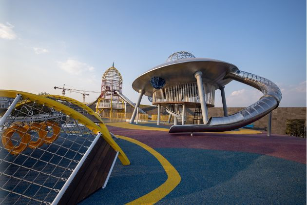 高大的太空一号、外星人搭乘的UFO飞船等等,这里简直是个滑滑梯的乐园,小朋友爬上爬下不亦乐乎,完全忘了天气炎热这回事。