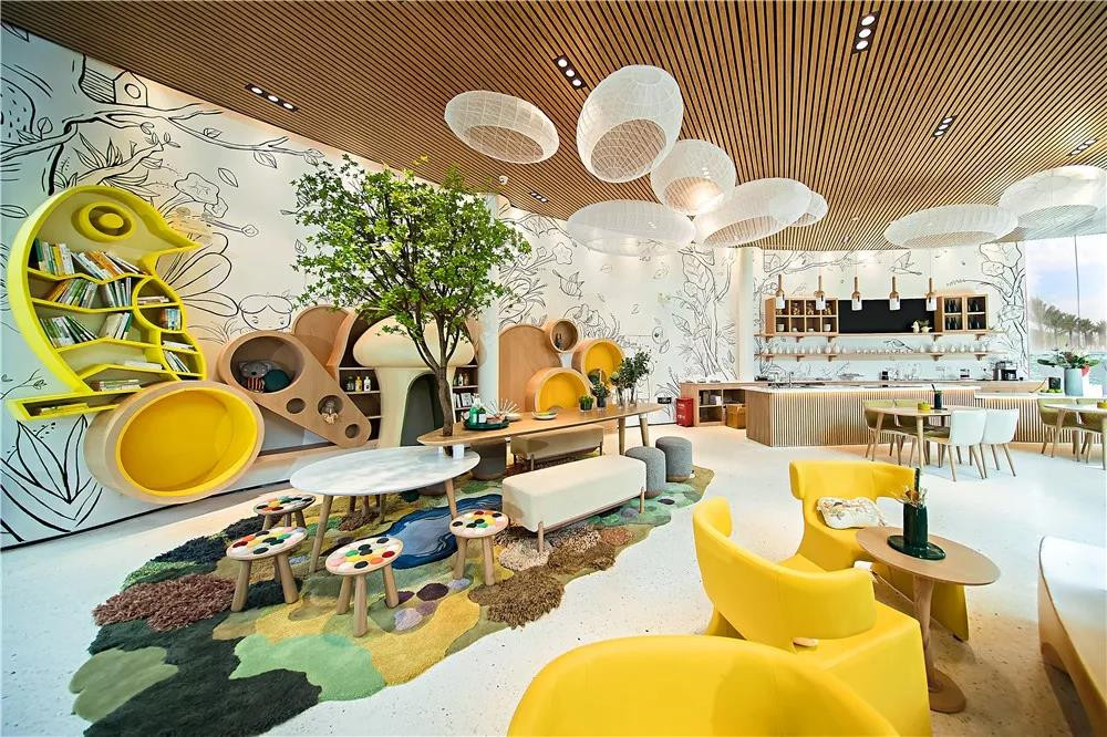 树屋空间的侧面是鸟胃食坊,在这边,不仅可以动手做各种小手工,还有一个迷你小厨房。各种厨具应有尽有,小朋友可以扮演厨师,也可以与家长一起动手制作小点心,体会DIY的快乐。
