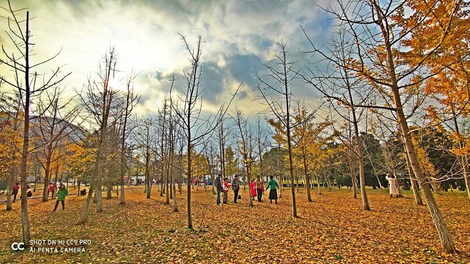今年八都岕的银杏长得非常不好,当地老乡说,往年的银杏非常茂盛、漂亮、金黄,并拿出手机让我看往年的银杏照片,确实漂亮,今年因为疫情的原因,疏于管理,再加上连日阴雨,本来就不茂盛的银杏叶大部分已经落完,还能看到这些场景已是非常幸运了。