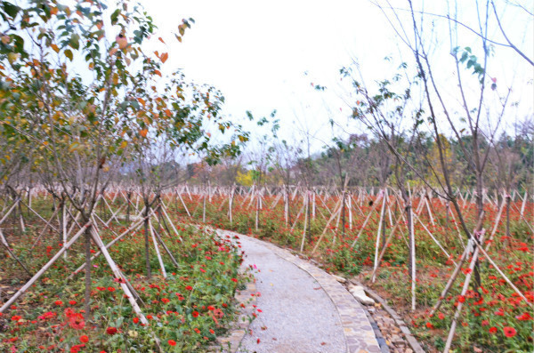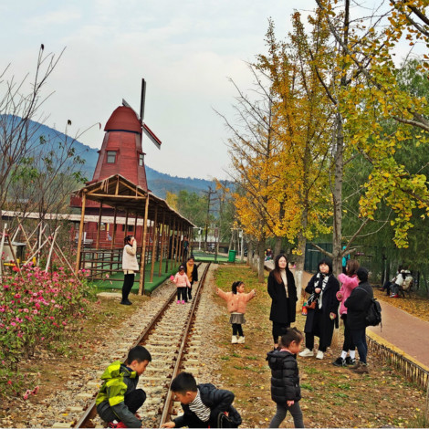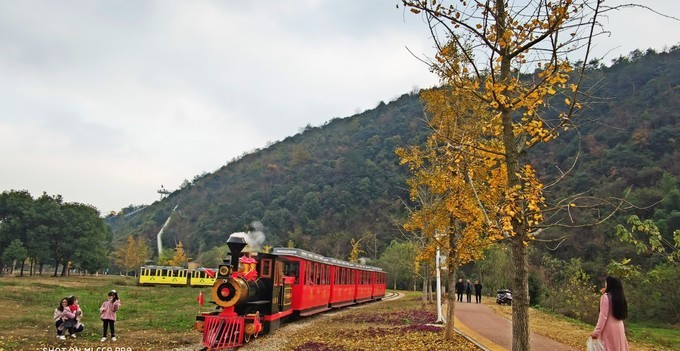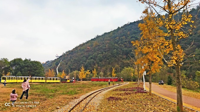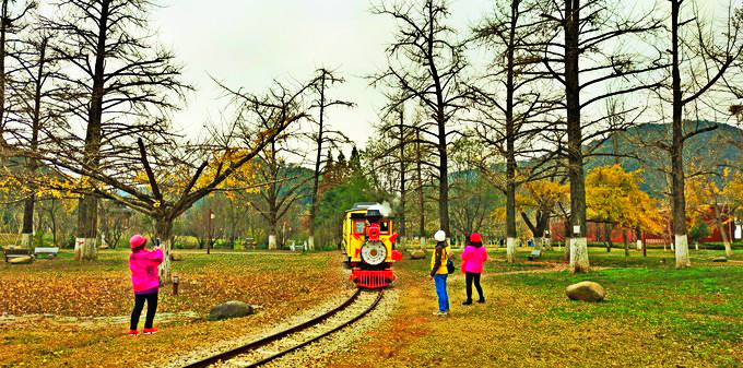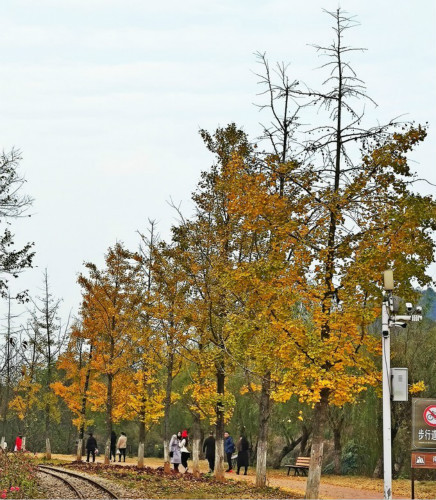 走过这片红缨谷,便是娱乐项目小火车的车站,铁路两边是成片的银杏树,估计这些树栽种时间不长,都是瘦瘦的,树叶也不多,不好看。