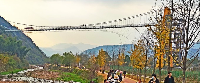 抬头是一条长长的玻璃栈道,可能是票价较贵的原因,上去走的人不多。