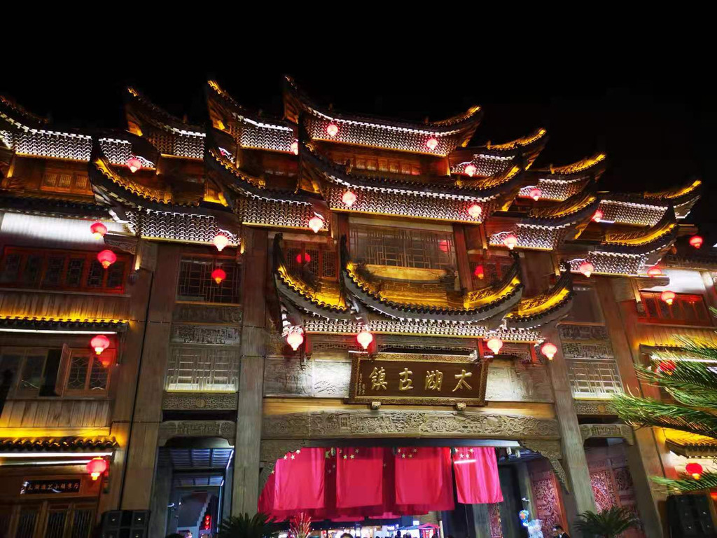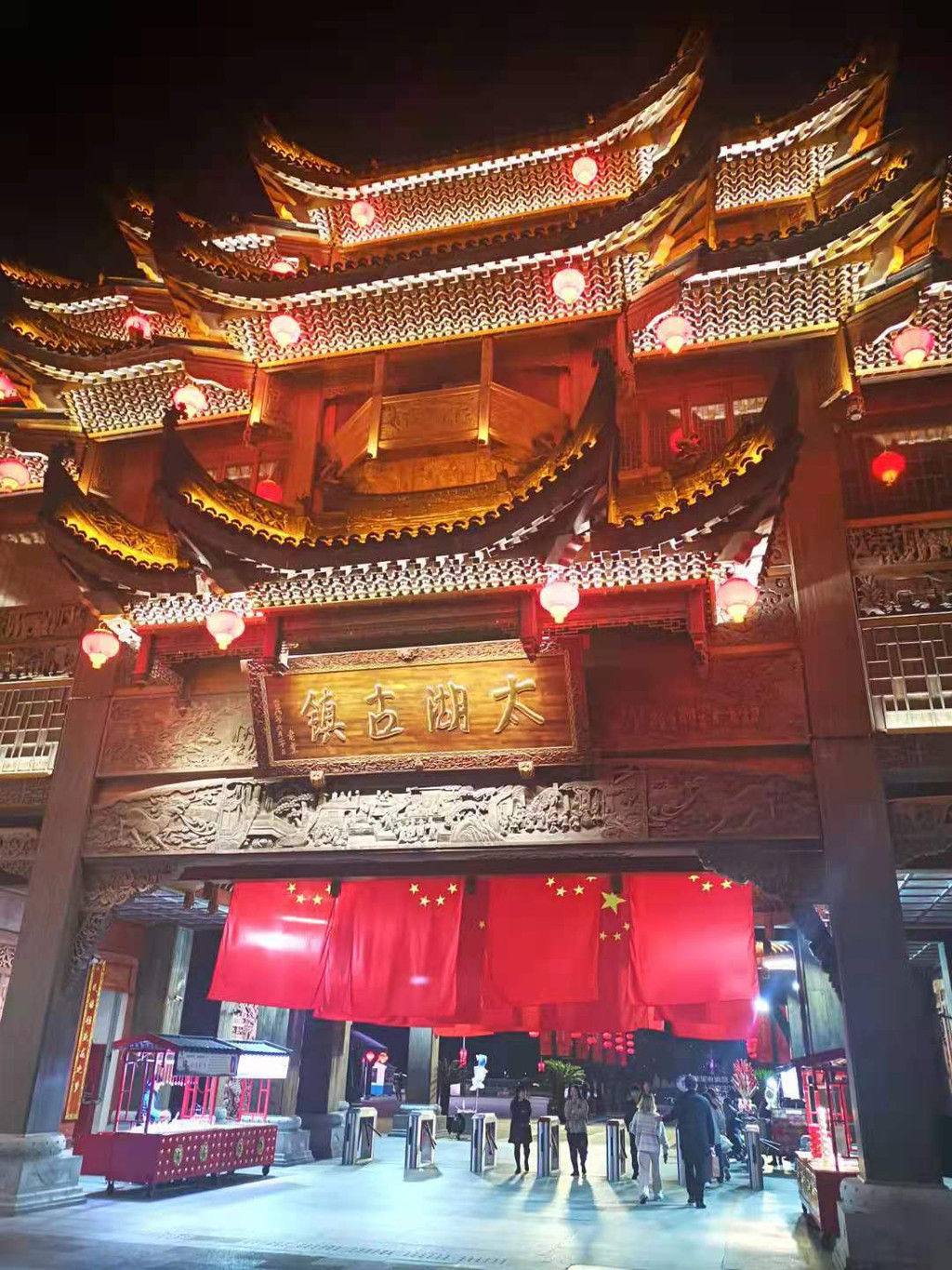 夜游太湖古镇 古镇坐落在浙江省湖州市长兴县杨小线太湖龙之梦乐园内。是一处人工建造的全新古镇风格建筑群,内部基础设施建设相当完善,卫生部署很到位,每一处都显得很干净和谐,令游客感到非常舒心,特别是到了晚上各种灯光令人倍感亲切和温馨。