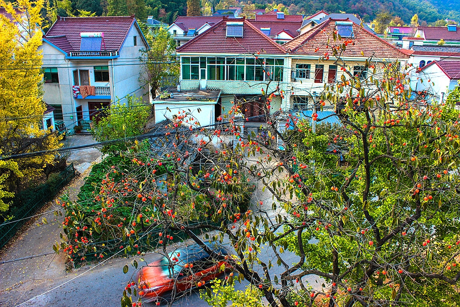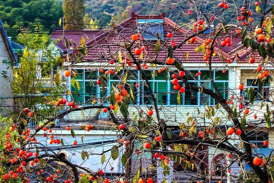 柿子熟了,像红红的灯笼一只只挂满了树枝。