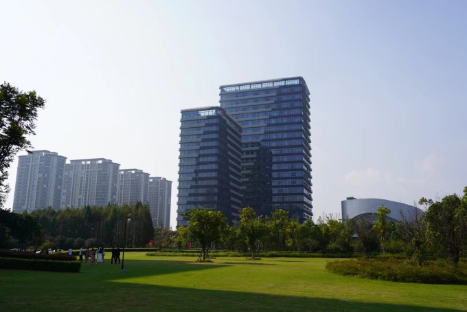 建筑的墙上,远远就能看出太湖的轮廓,印在墙上,就仿佛是历史的回响,在现代的流转。整个大草坪在阳光的照射下,是初秋的美好,更是旅途的快乐源泉。