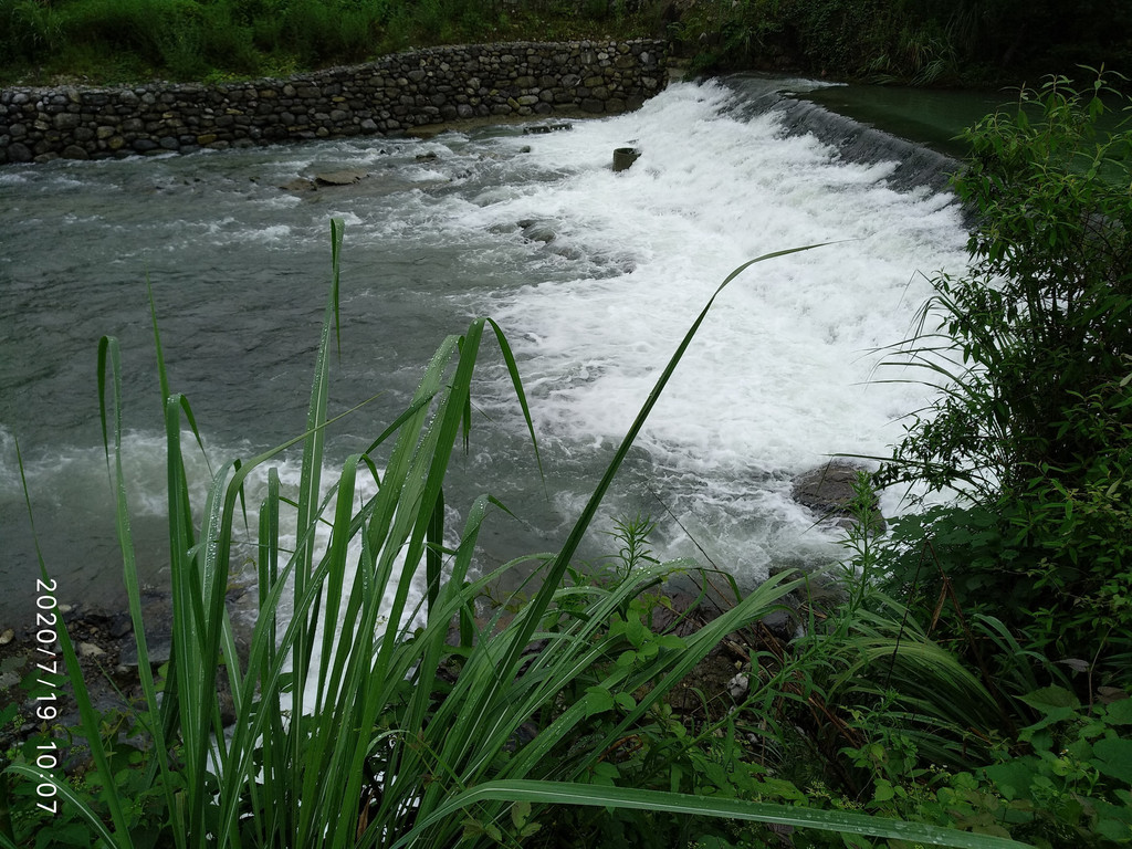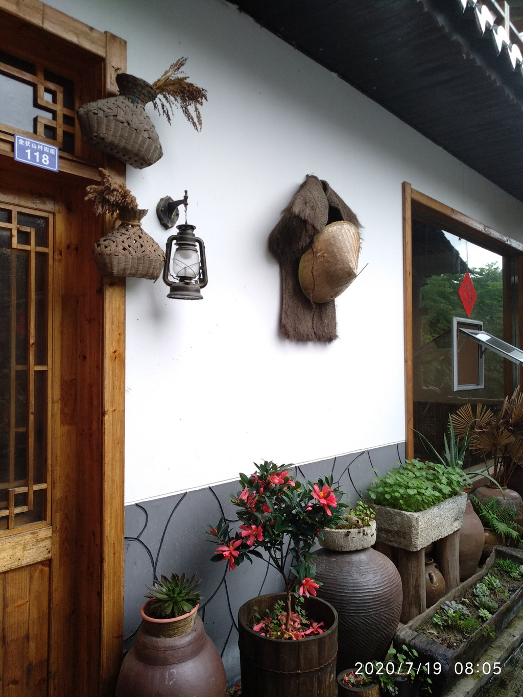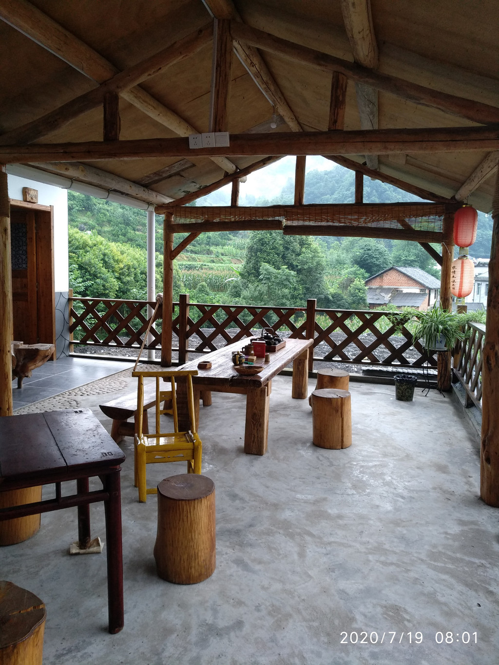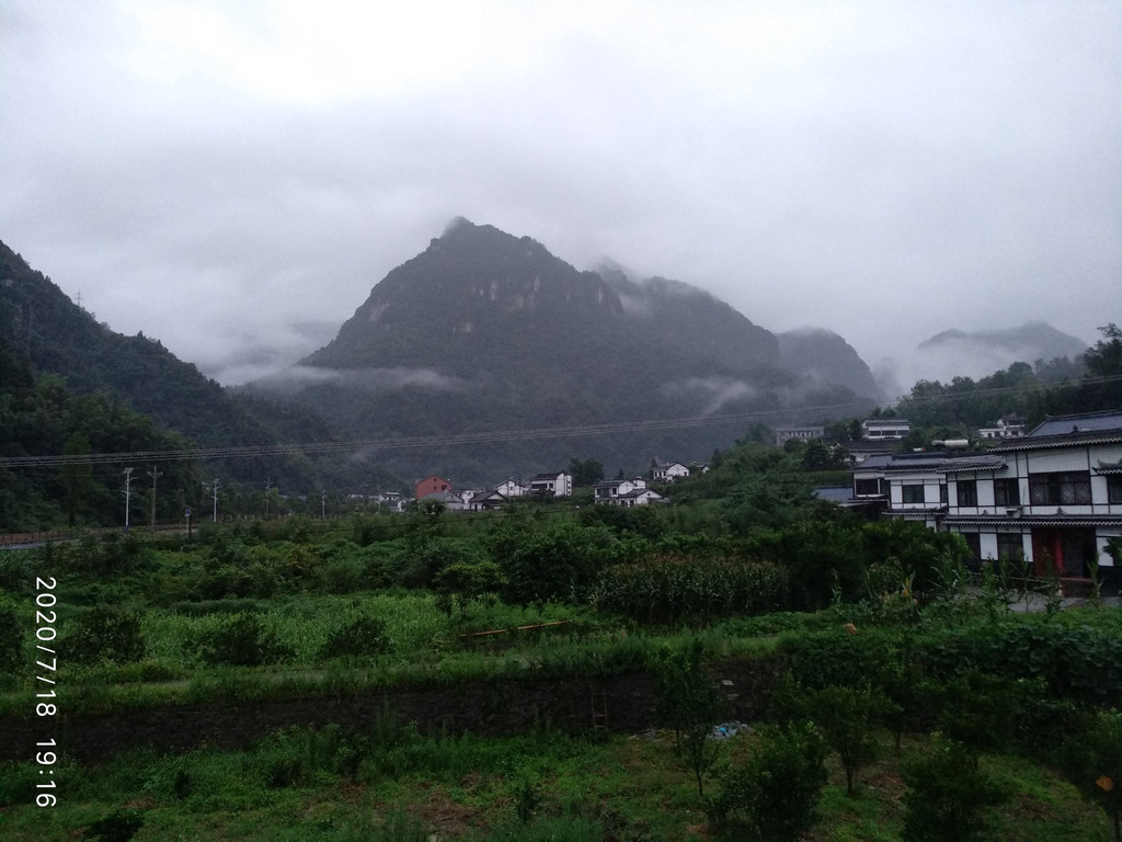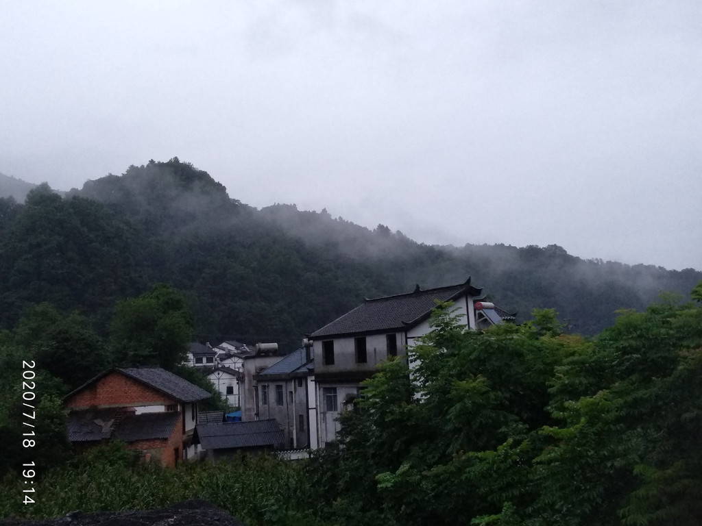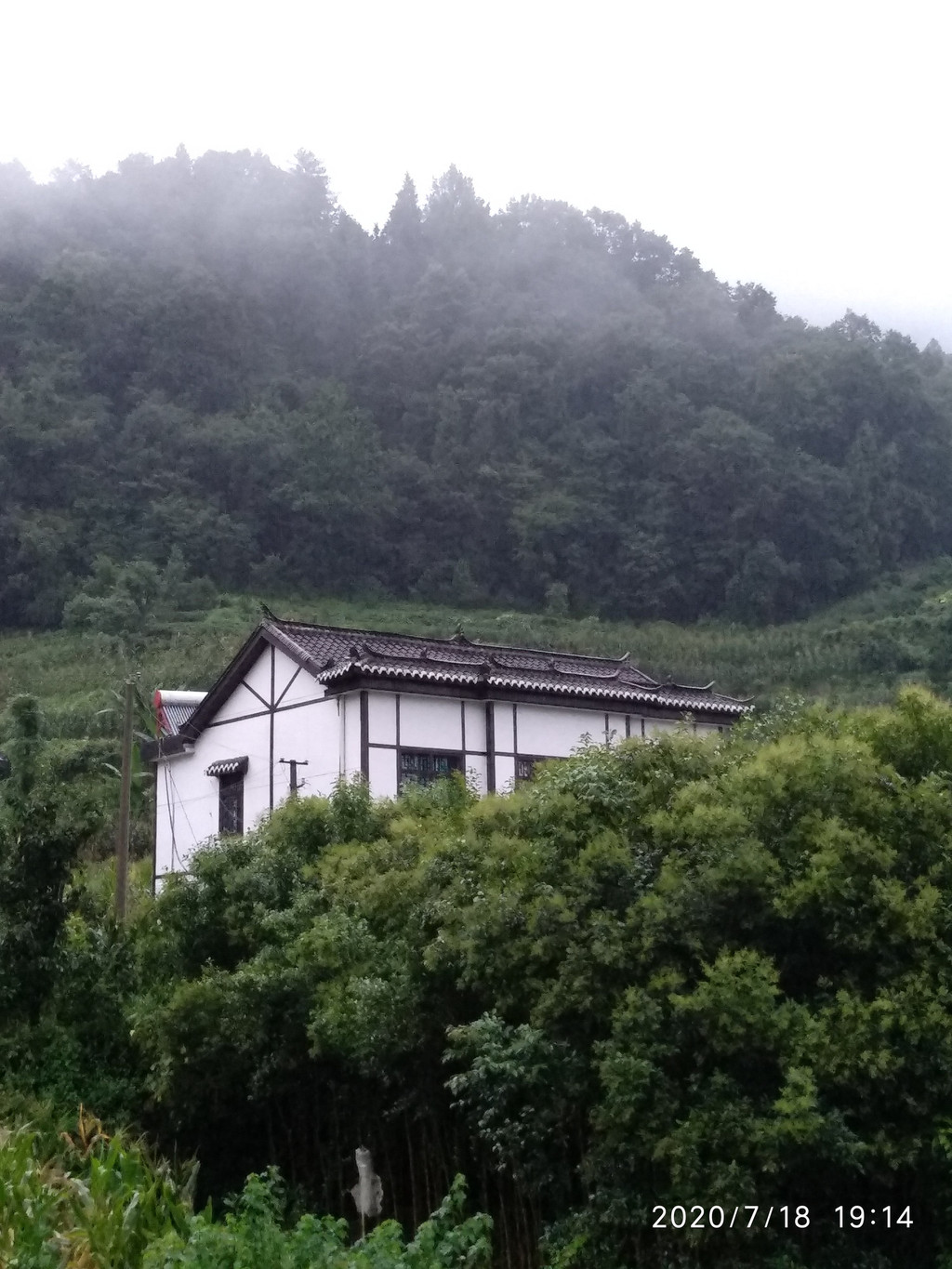 我们是七月十八日下午四时许到达方山的。彼时,天正下着雨,空气湿润,有着山野里特有的芬芳。所住民宿的周围都是高高低低的山,山上云雾弥漫;民宿门前是一条小溪,因为下雨,溪水上涨,哗哗地流着。目之所及,都是一幅幅秀丽的水墨画,令人心旷神怡。