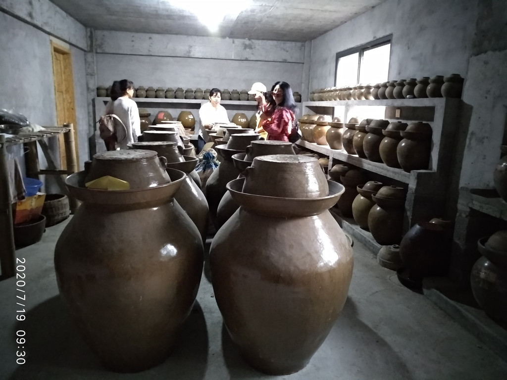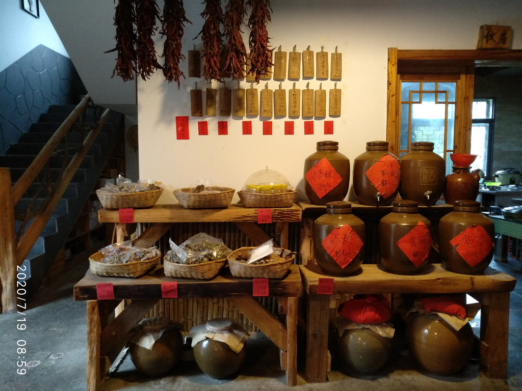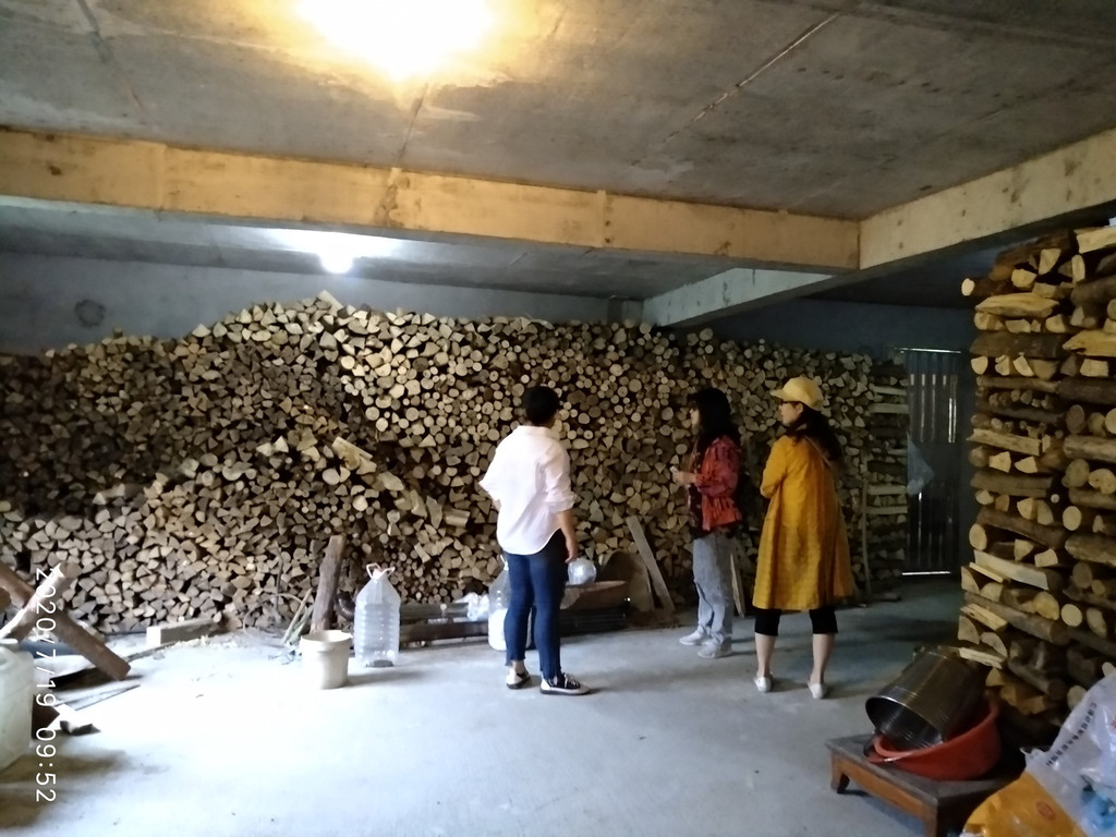 我们入住时,适值旅游淡季,客人不多。女主人热情健谈,忙完之后就会和我们闲聊一会儿,讲述他们的创业故事,介绍他们的日常生活,还带我们参观他们家的地下储藏室。当阿李得知他们一天要从早上七八点一直忙到晚上九十点时,当阿李听说他们不仅开民宿还开网店,一年在网上至少要卖掉上万斤自做的豆瓣酱时,当阿李目睹他们家储藏室中大大小小的装豆瓣酱的坛子、装酒的坛子、装各种腌菜的坛子时,当阿李看到他们一家在今年疫情期间劈的木柴码得整整齐齐堆成一堵墙时,阿李都要情不自禁地赞叹:方山人民真能吃苦耐劳!
