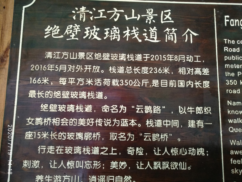 然而,绝壁栈道旁随处可见的用坏了的柴油机,和它旁边介绍修建历史的标牌,以及悬挂在洞壁上的当年施工照片,都提醒着我们:现在的一切来之不易!当年方山人民靠肩挑背扛,将百多万吨水泥、钢筋运上绝壁悬崖;他们把小型柴油机运上山,用它发电,柴油机都不知道用坏了多少台;他们用绳索悬吊在半空,在绝壁上打眼钻洞、搭建支架模板。2015年6月他们在山上建成了8000米长、1.5米宽的步游道,2016年5月他们在悬崖峭壁上建成了长达236米的绝壁玻璃栈道,2019年2月他们又在险峰中建成了156米长,4米宽的3D玻璃观光走廊。数年之间,方山人民在奇峰竞秀的武陵山脉东北段,用自己的双手建成了美丽的清江方山风景区。阿李不能不惊叹方山人民的吃苦耐劳精神!