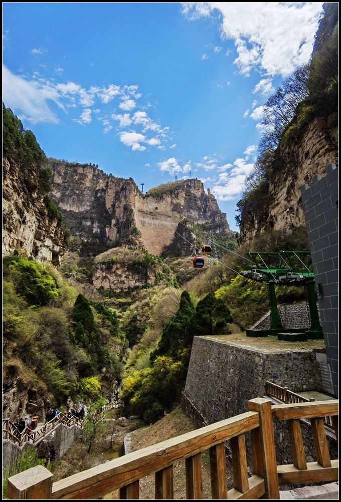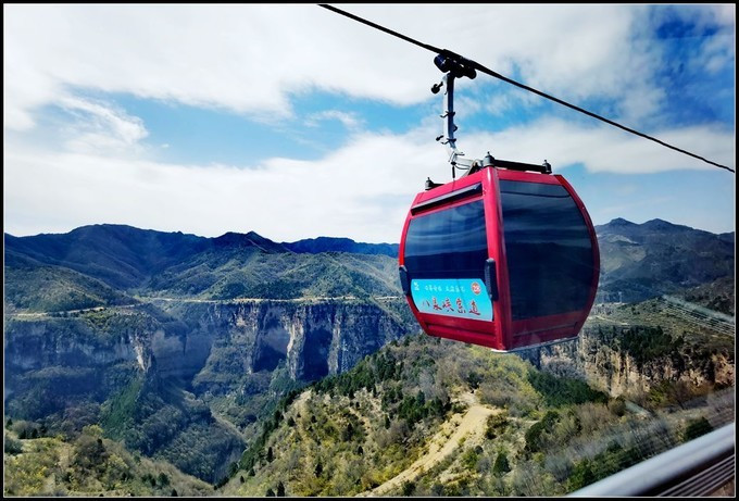 太行八泉峡景区 太行八泉峡景区乘坐缆车上山。八泉峡索道是 中国 第一条单线循环脱挂式拐弯客运索道。