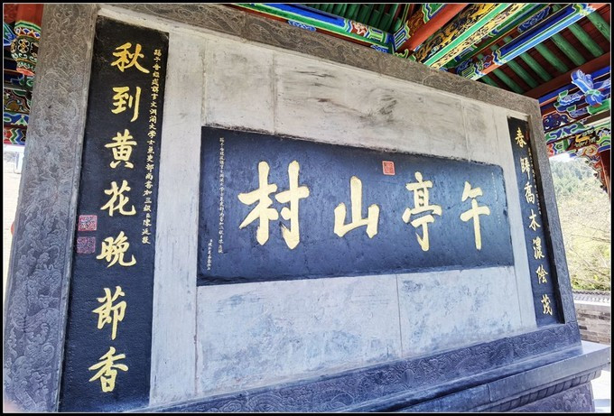 皇城相府 皇城相府御书楼是由陈廷敬三子陈壮履所建。现楼内存康熙御匾‘’午亭山村‘’及对联:‘’春归乔木浓荫茂,秋到黄花晚节香‘’。