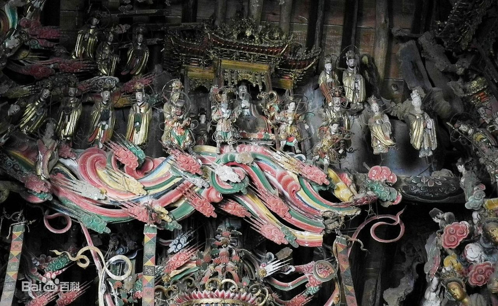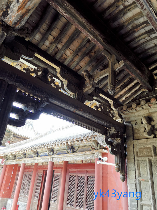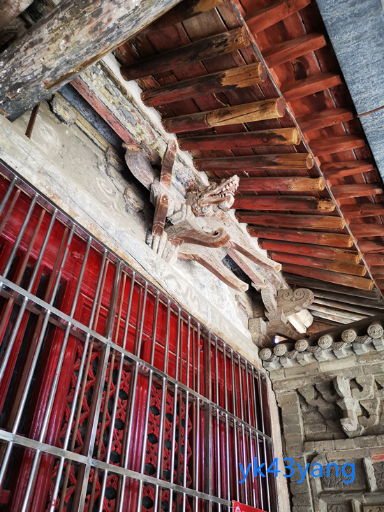 上次来时,曾有管理人员介绍,他从小就在这里玩耍。那时的塑像比现在更多,每一根柱子上都悬塑者各类仙佛。后来,不断地有跌落损坏,才成为现在这样。不过,能够保存到如此,也已经很不容易了。
