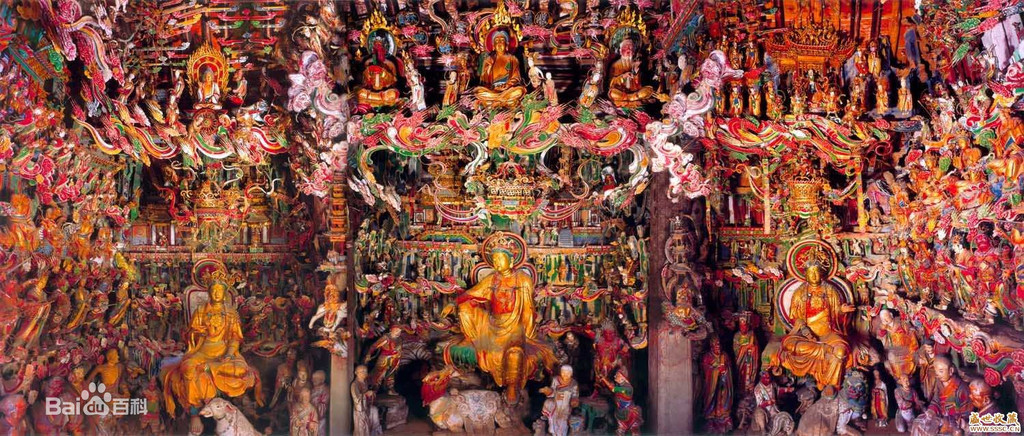 非常可惜的是,殿内不准拍照,所以没有能够拍摄到精美彩塑的照片。上次来时,曾经拍摄过几张,因为光线不好,效果很差。