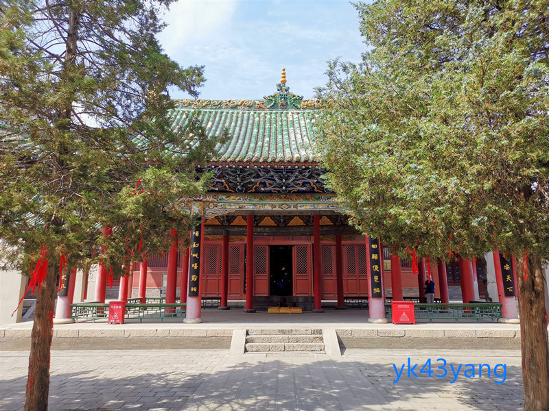 山门两侧各有三间面阔的悬山式顶垛殿。三座建筑一字排开,更显得门庭的气势非凡。