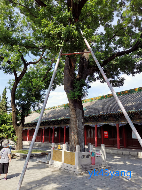 二进庭院内还有东西两侧的配殿。此外,庭院中有一棵古槐和一棵古树化石。